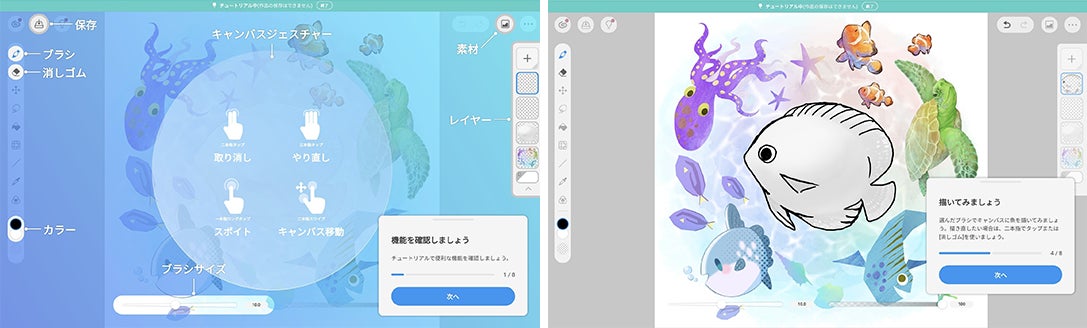 ▼タブレット版シンプルモードにチュートリアル・ヒントが追加され、より快適な創作活動が可能に