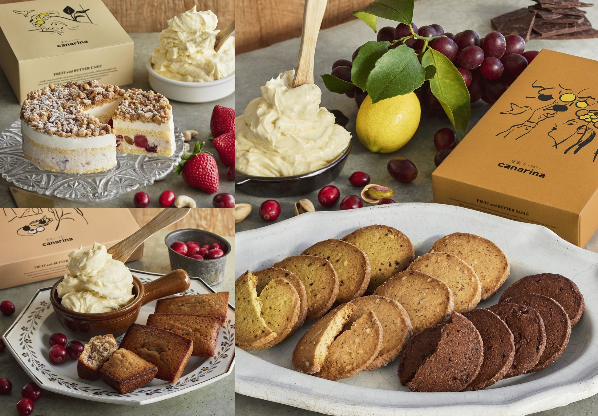 自然からの恵みである、甘酸っぱい・ほろ苦い・香ばしい、個性豊かな果実と濃厚で芳醇なバター、それぞれのおいしさと素材感を味わってほしいという想いをこめて、カナリナのお菓子をつくりました。