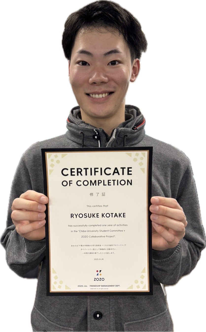2024年度の活動について、学生がZOZOへ報告する会が、2025年3月28日(金)に千葉大学にて行われました。1年間を通じてプロジェクトに参加した15名の学生には、ZOZOよりプロジェクト修了証が贈られました。
