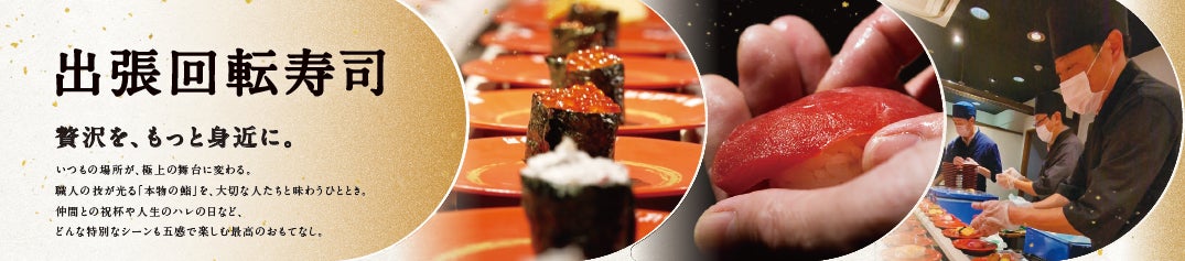 「贅沢を、もっと身近に。」をコンセプトに、かっぱ寿司が提供する出張回転寿司は、特別な日を彩る最高のおもてなしを、驚きの手軽さで実現します。