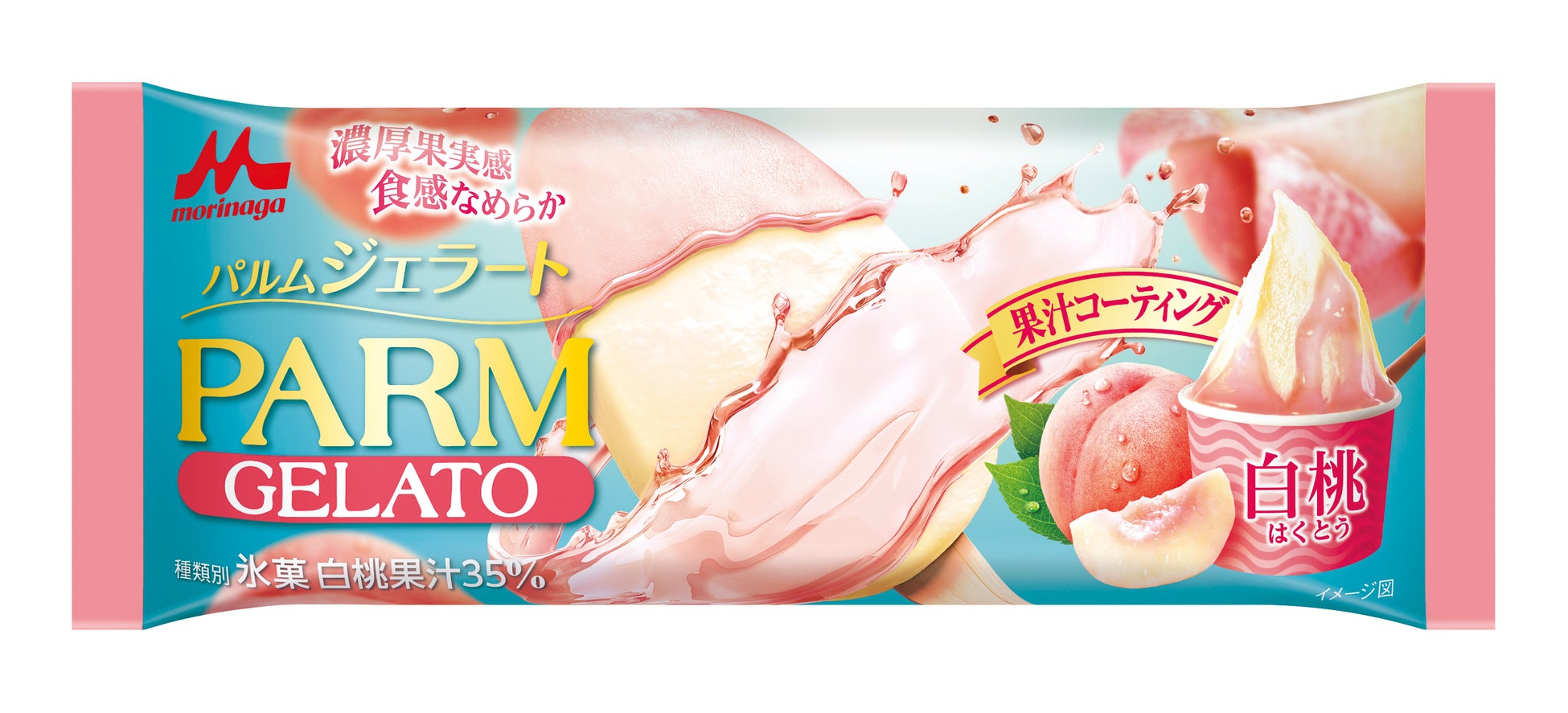 「PARM(パルム)ジェラート 白桃」は、なめらかな白桃ジェラートを口どけの良い果汁コーティングで包み込んだアイスバーです。とろけるような「白桃」の甘くみずみずしい味わいをお楽しみいただけるよう、ジェラート部分は微細な氷結晶でねっとりとなめらかな食感にしました。また、白桃果汁を35%使用することで、濃厚でジューシーな白桃の味わいを感じられるように仕上げました。