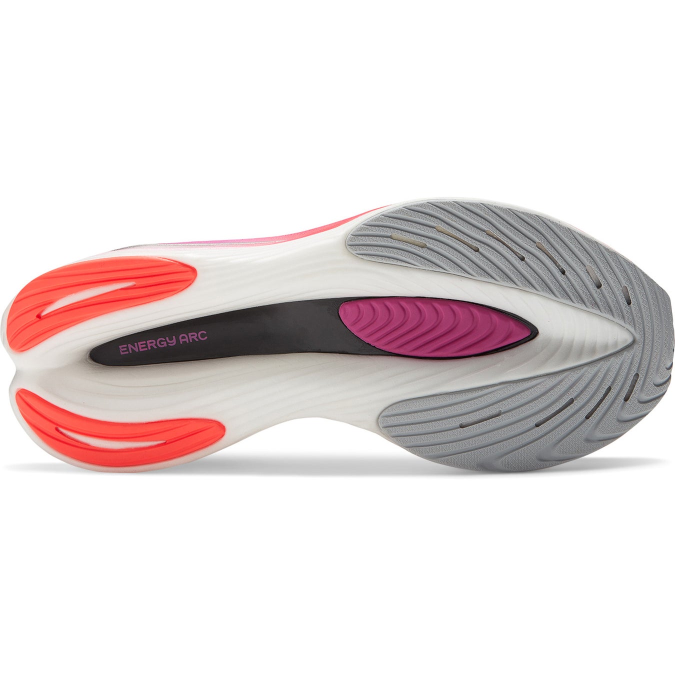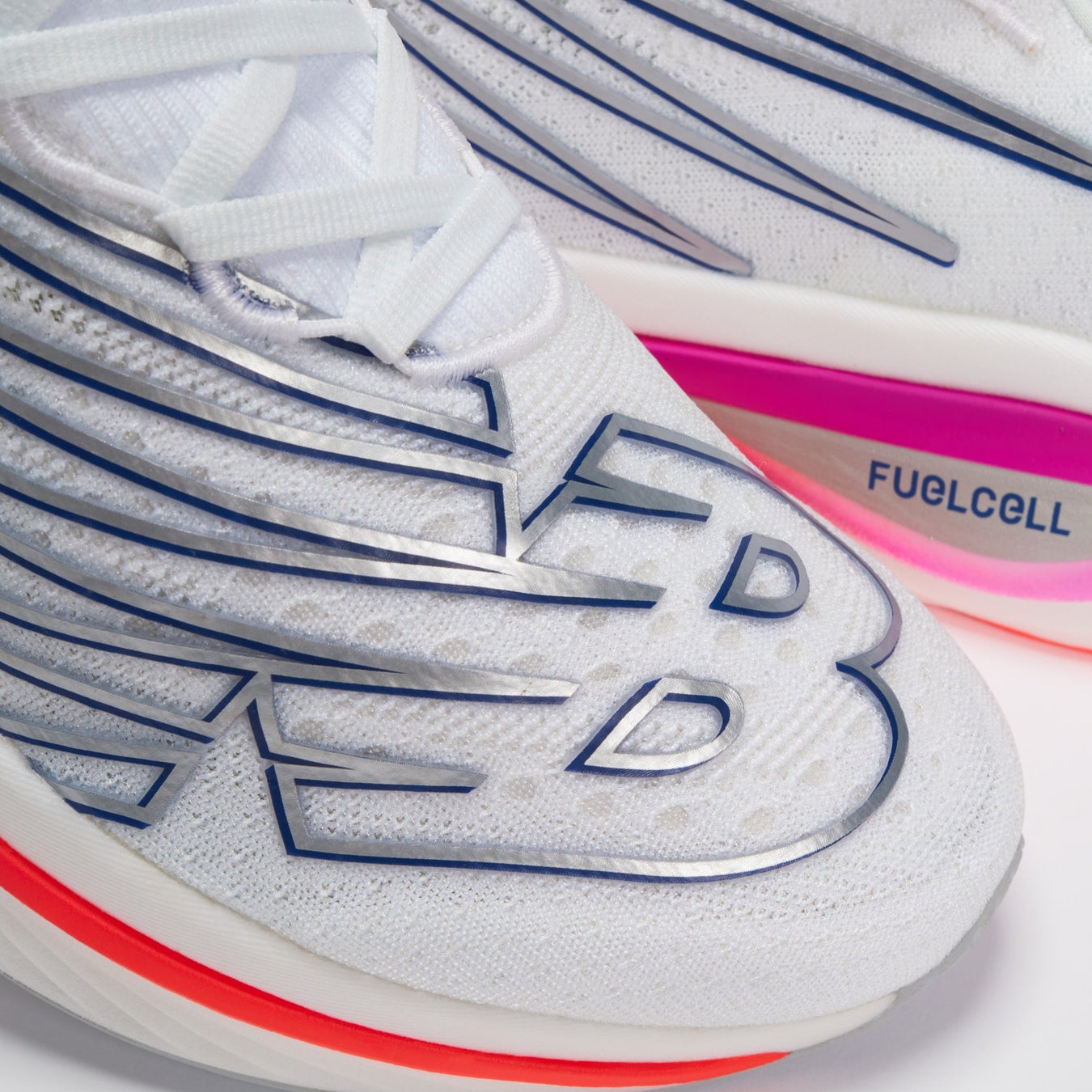 ルール限界の厚さにした2層構造のFuelCellミッドソールは、ソール全体にENERGY ARC(エナジーアーク)を搭載し、2種類の異なる繊維をMIXさせたフルレングスカーボンファイバープレートとの相乗効果により、ランニングエコノミーも改善され、レース終盤までスピードの維持をサポートします。