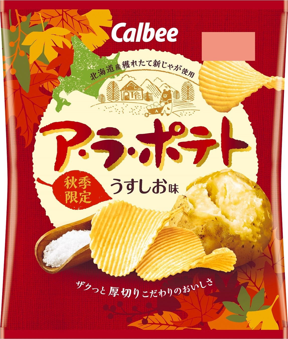 「ア・ラ・ポテト」は、その年に収穫したばかりの北海道産の“新じゃが”のみを使った季節限定の厚切りポテトチップスです。じゃがいものおいしさを活かした厚切りカットでザクっとした食感が楽しめます。1989年の発売以来、秋の定番ポテトチップスとして長年にわたりお客様に愛されています。
