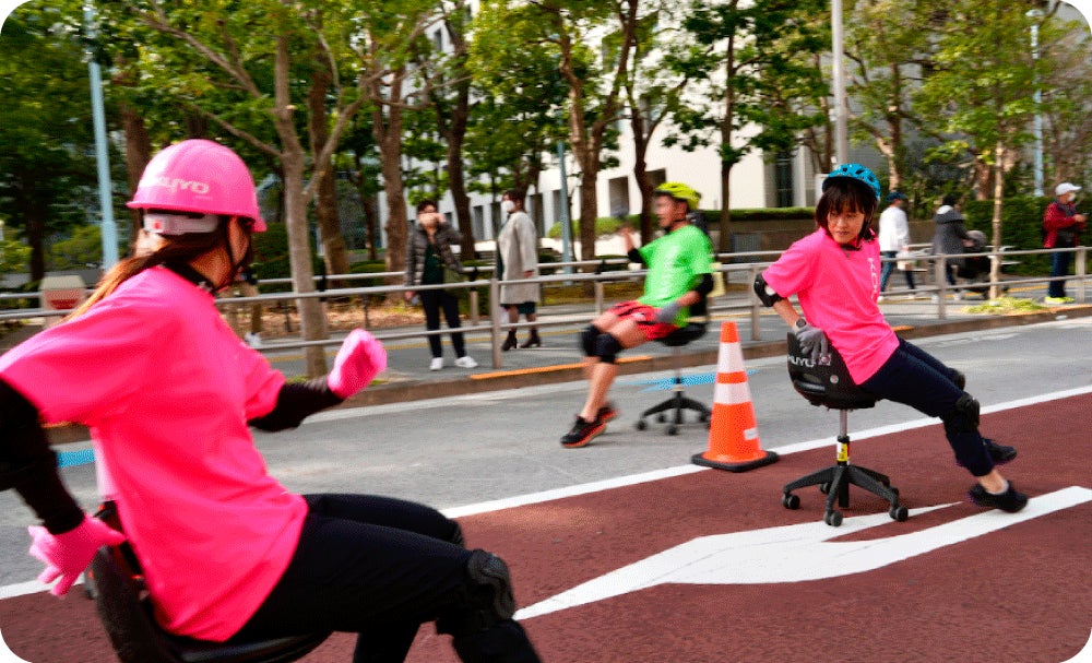 事務椅子で街を駆け抜ける2時間耐久レース、いす1グランプリを品川の街で開催します。