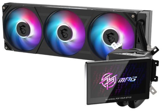 MSI MPG CORELIQUID Pシリーズは、MSI 「EZ DIY」機能を数多く取り入れており、組み立てのしやすい設計となっています。取り付け済みのUNIブラケットは一つで最新Intel®CPUソケットとAMD CPUソケットに両対応し、ブラケット取り付けの煩わしさを解消します。 さらに、革新的な一体型ケーブル設計により、ウォーターブロックとラジエーターファンの接続を1本のケーブルに集約し、簡単に配線することが可能です。液晶パネルには4.3インチIPSパネルを採用し、コンテンツを表示するための画面領域を拡大しました。この大型IPSパネルは角度調整が可能で、MSI 270度パノラマガラスPCケースに完璧にフィットするように設計されており、ユーザーはこれまで以上に美麗なアニメーションや画像を表示することが可能です。