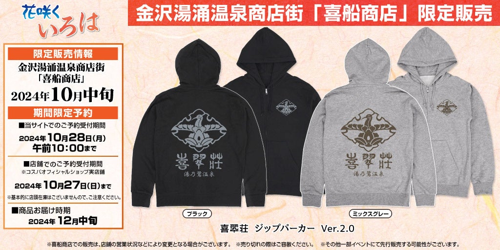 『花咲くいろは』「喜翆荘」をモチーフにしたジップパーカーが登場!金沢湯涌温泉商店街「喜船商店」限定販売!【株式会社コスパ】
