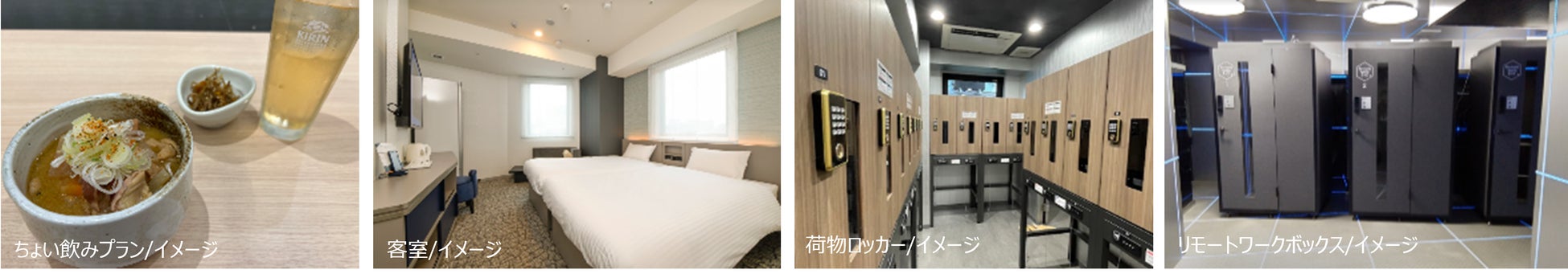 「変なホテル東京 浜松町」では「エクスプレスチェックイン」導入にあわせて、“ちょい飲みプラン”を発売いたします。ホテル1階のレストラン「つけ蕎麦専門店 満天」にて、人気メニューのもつ煮とサワー又はハイボールから選べるワンドリンクのセットを500円でご提供いたします。「変なホテル東京 浜松町」の客室はシングル・ダブル・ツインタイプをご用意しており、全客室にスーツやジャケットなどの衣類のしわやにおいが取れ、除菌もできるクリーニングマシンLGスタイラー、眠りのリーディングカンパニーロフテー社の快眠枕を導入しております。また、チェックイン前・チェックアウト後も時間を気にせず無料でご利用いただける荷物のお預かりロッカーを設置しております。ホテル2階にはデスクとワーキングチェアを設置しWi-Fi環境の整ったリモートワークボックスもございます。1泊1部屋6,000円~(シングルタイプの客室/税・サ込)