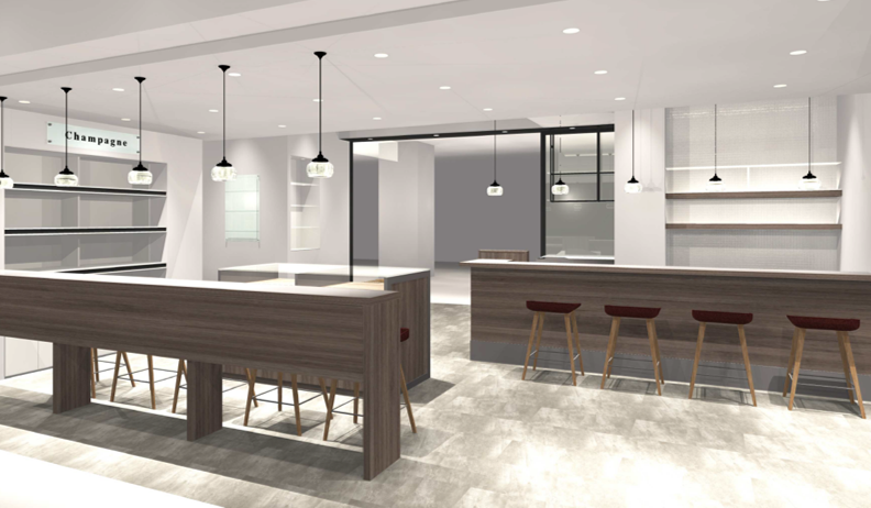 当店では、1,000~3,000円台のフランスやイタリアワインを中心に、世界各国より厳選したワイン約600種類を取扱い、高価格帯や希少ワイン約100種類が並ぶワインセラーを設置します。売り場面積は約103㎡です。