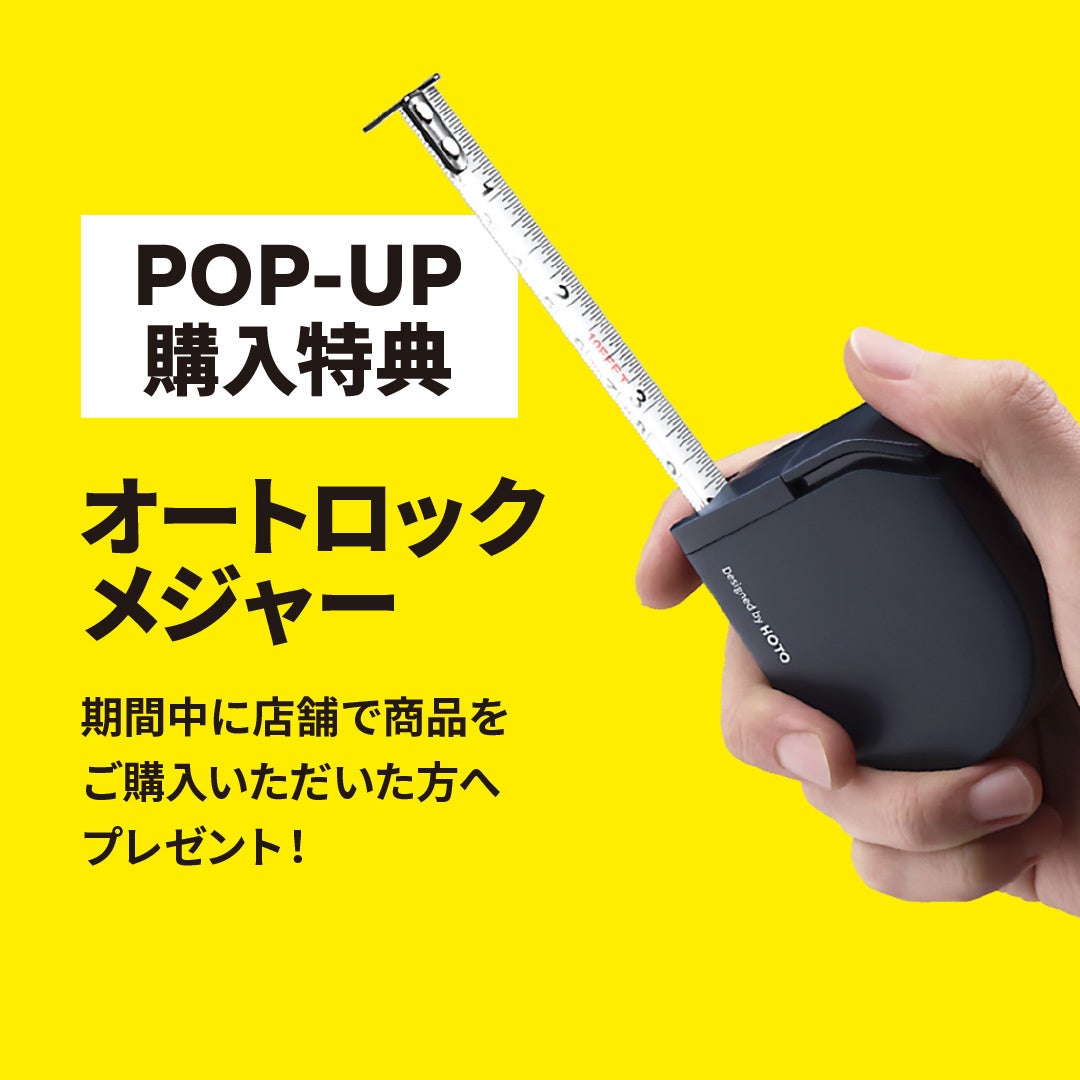 POP-UP期間中に取扱製品をご購入いただいた方には、HOTOの海外版オートロックメジャーをレジにてお渡しします。
