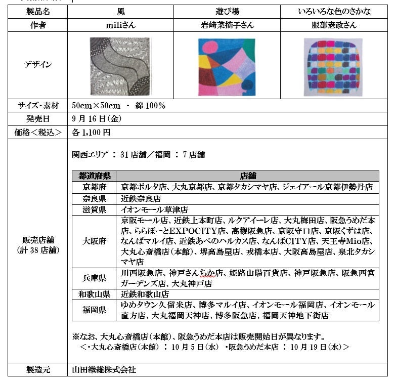 株式会社ファンケルは9月16日(金)から、障がいのある方が制作したアート作品をふろしきにした「アール・ブリュット※ふろしき」(3アイテム/価格各1,100円<税込>)を、関西エリアおよび福岡県の一部の直営店舗(計38店舗)において数量限定で販売します。