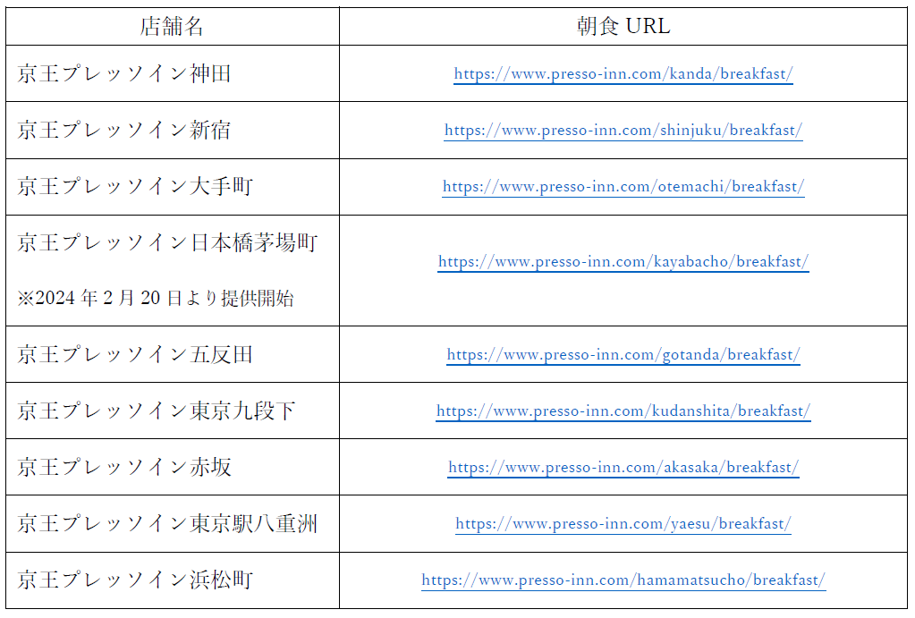 1.京王プレッソイン各店の朝食紹介 ※2024年1月30日時点