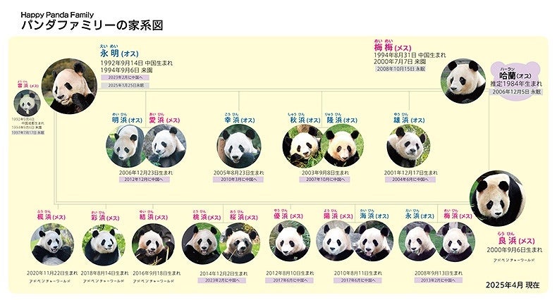 これまで長きにわたり、いのちを育み、パンダファミリーの歴史を築いてきた「良浜」。その優しさと愛情深さはたくさんの笑顔と感動を届けてくれました。本年6月末には、「良浜」とその子どもたちである「結浜(ゆいひん)」・「彩浜(さいひん)」・「楓浜(ふうひん)」が、中国成都へ帰国することとなりました。今回の母の日イベントは、帰国を前にした感謝の気持ちと、未来につながる希望を込めて実施いたします。当日は、「良浜」の大好物の竹で作られた“ありがとう”の文字をプレゼントし、その様子はアドベンチャーワールド公式SNSでもライブ配信いたします。ぜひこの機会が、皆様とともに「良浜」へ心からの「ありがとう」を届けるかけがえのないひとときとなれば幸いです。