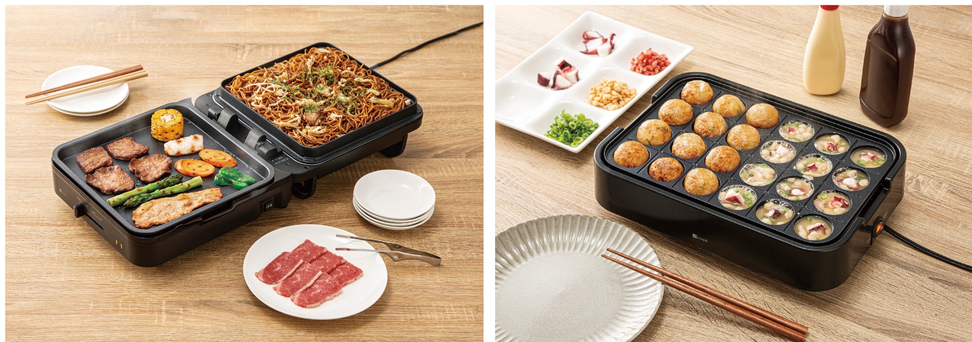 この度、折りたためる両面ホットプレートとミニフラット&たこ焼き器を発売しました。