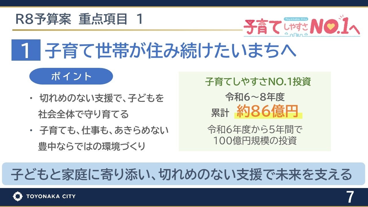 予算案 重点項目1「子育て世帯が住み続けたいまちへ」