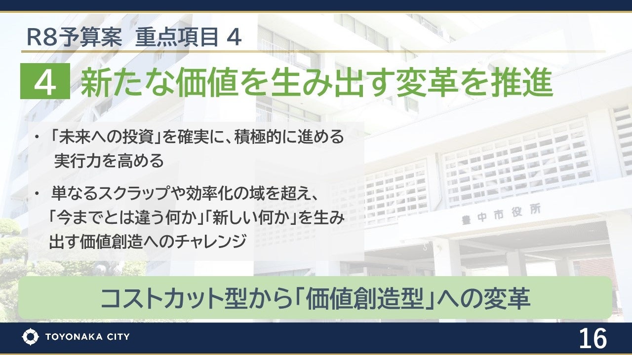 予算案 重点項目4「新たな価値を生み出す変革を推進」