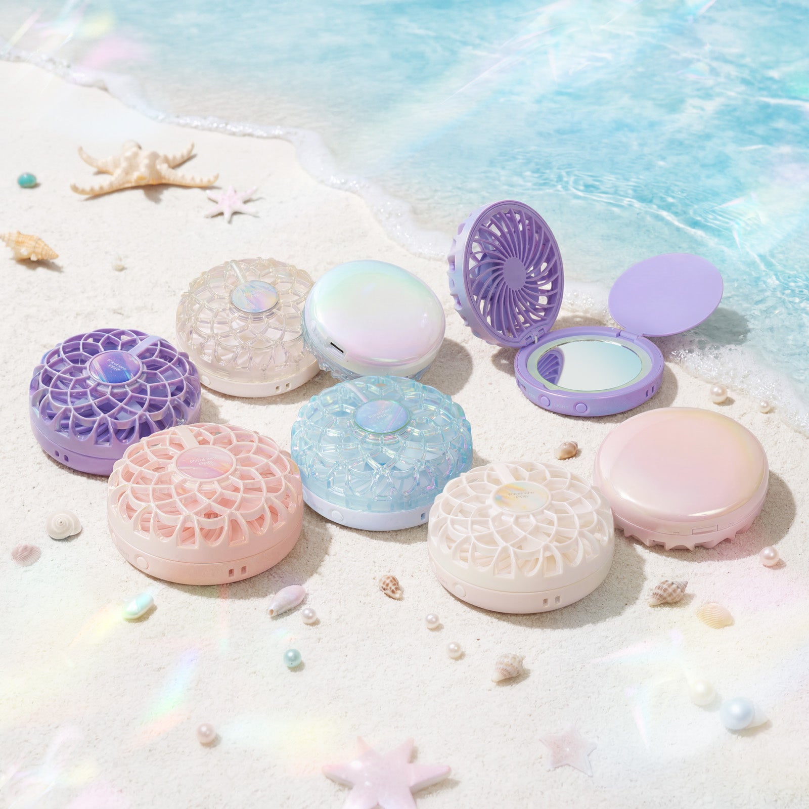 「ミラハナファン」は、オーロラのような艶感と丸みのあるフォルムに加え、リングライトがふわっと輝くことで、まるで“魔法のコンパクト”のような存在感を演出します。