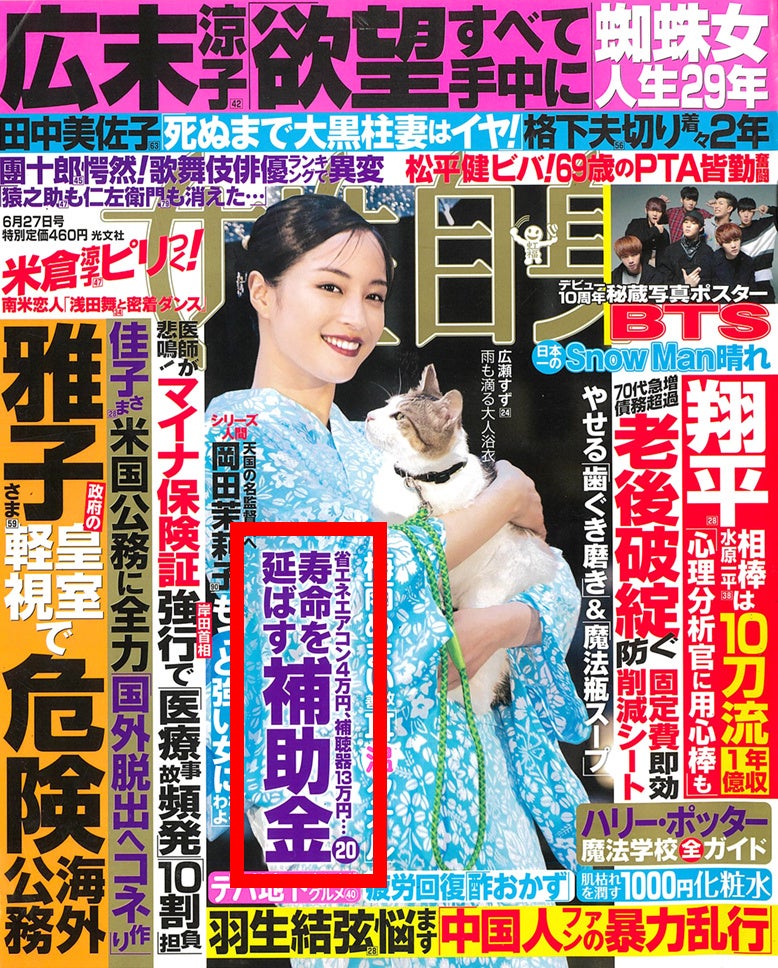 6/13(火)発売の『女性自身』「寿命を延ばす補助金20」にて「助成金なう」3頁が特集されています。