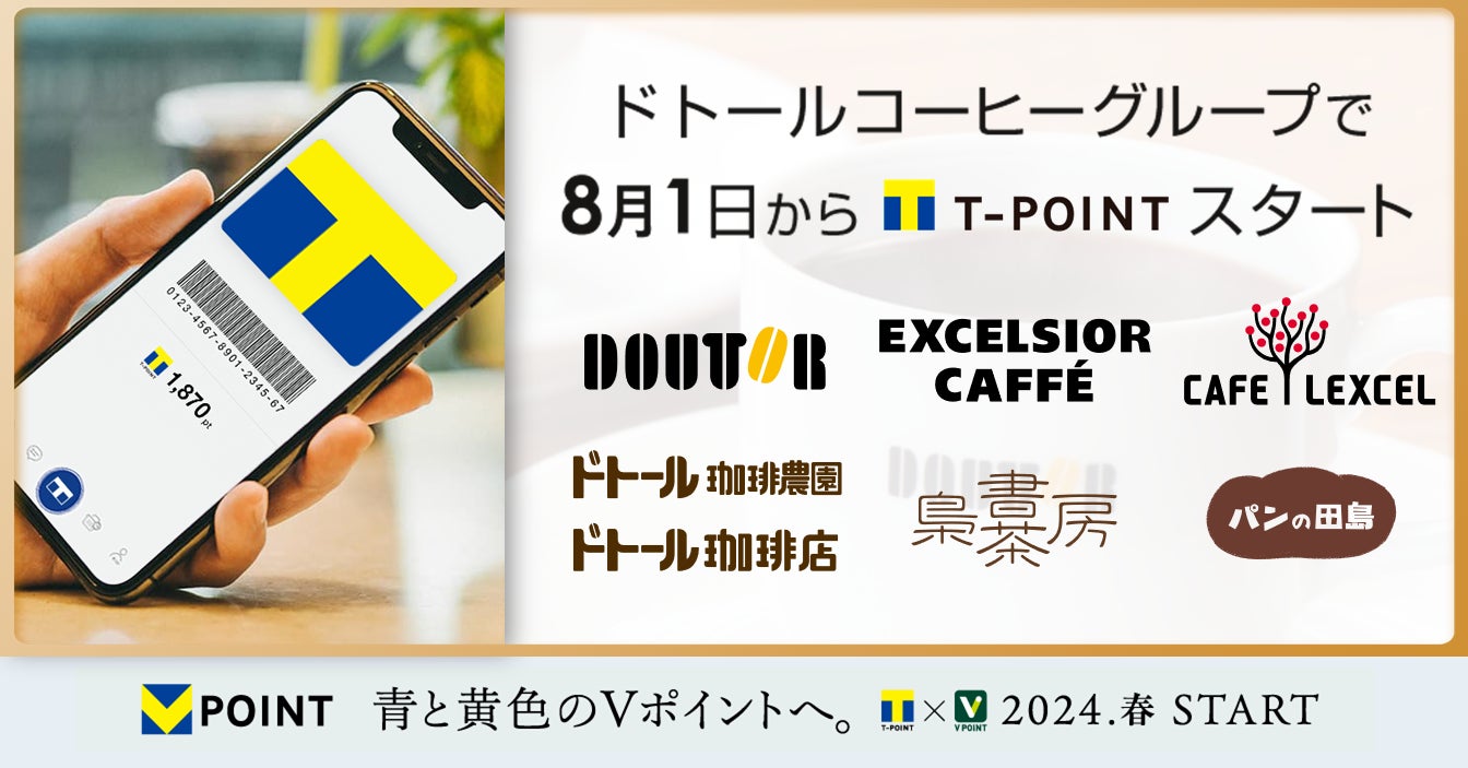 8月1日より「ドトールコーヒーショップ」「エクセルシオールカフェ」などでTポイントサービス開始