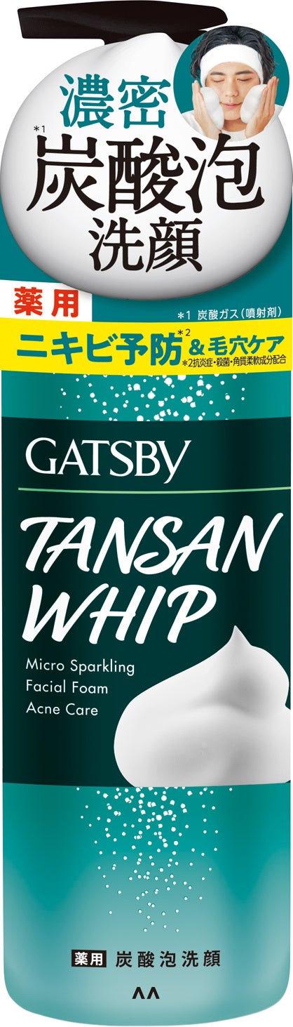 3種の有効成分でニキビ予防!摩擦による肌負担を気にせず洗える濃密泡の炭酸泡洗顔「ギャツビー マイクロスパークリング泡洗顔 アクネケア」が2024年8月26日(月)に新発売!