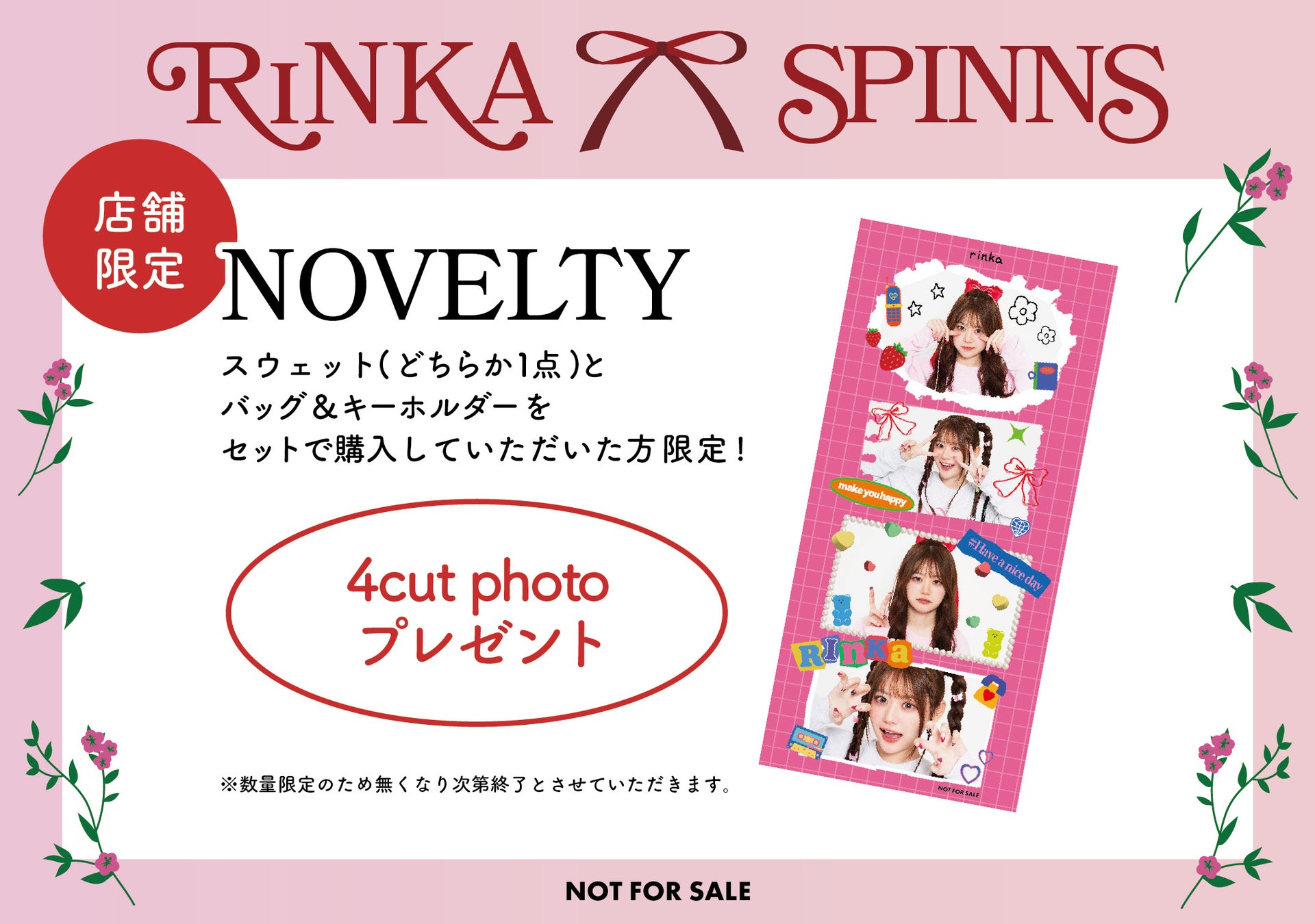 スウェット(どちらかのカラー1点)とバック&キーホルダーをセットで購入していただいた方限定で4カットフォトをプレゼントします。