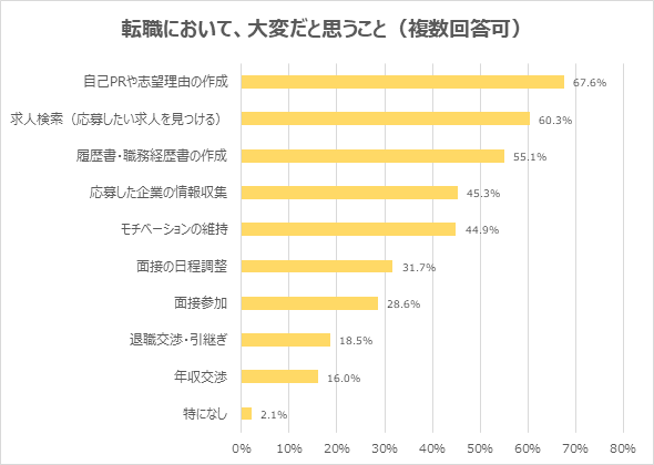 - 転職活動で大変だと思うこと1位 「自己PRや志望理由の作成」
