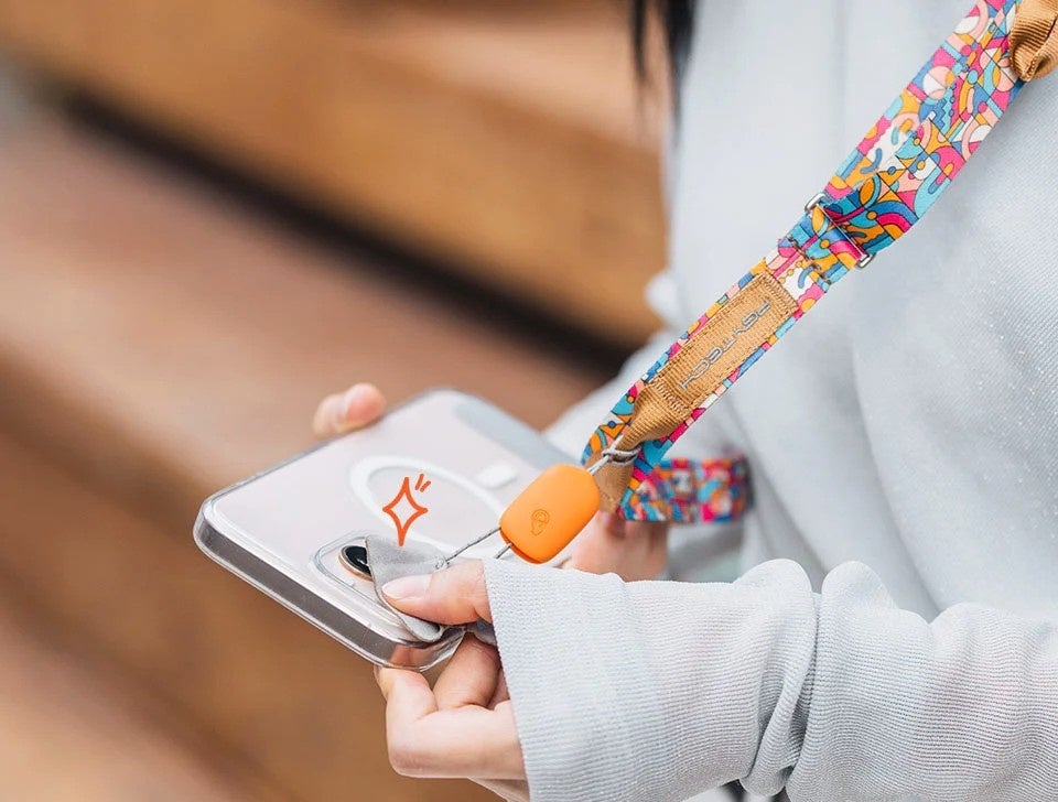 ストラップにはレンズクロス内蔵されているため、スマホカメラのレンズが曇った際も、すぐにきれいにできます。