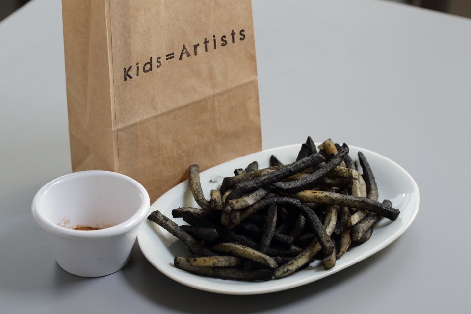 コンソメ味のシーズニングが入った専用の袋にポテートを入れて、優しくシャカシャカすると…? ?週替わりする参加アーティストのイメージカラーのソースにも注目!食とモダンな遊び心が詰まったポテートです。