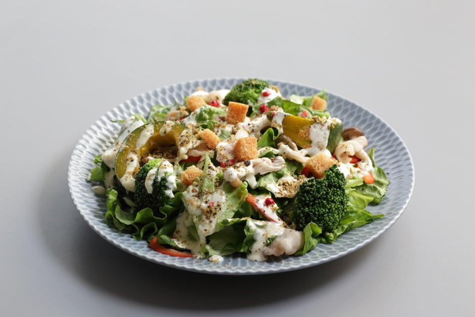 参加アーティストのイメージカラーや、好きな野菜を使ったサラダ。ドレッシングの色や野菜は展示アーティストによって週替わりするのでお楽しみに。