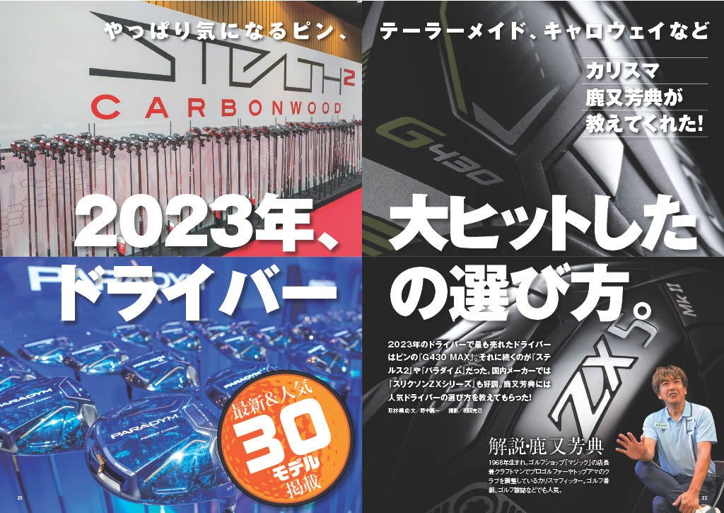 13代目のゼクシオを代表に、2023から2024年に販売された人気クラブ150モデルを網羅した最新のカタログ。特長はマーク金井、鹿又芳典、関雅史、関浩太郎、石井良介の5人のギア賢人の解説。そしてトラックマンなどでも試打したクラブの性格を事細かに表にしてみせています。ドライバーから、FW、UT、アイアン、ウエッジ、パターまで、あなたの欲しいクラブがこの1冊の中にある。年末年始にクラブを買い換えようというゴルファー必読です。