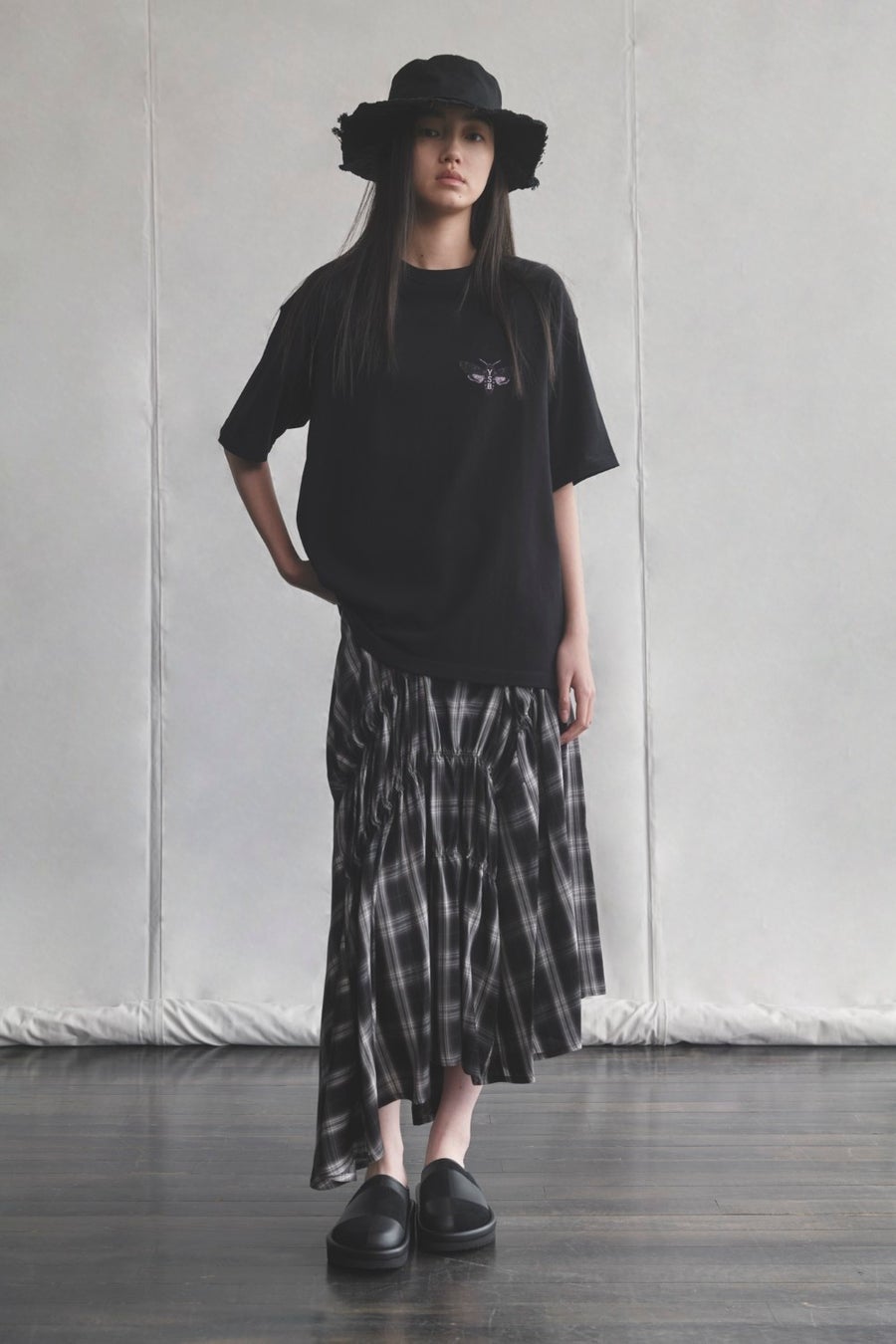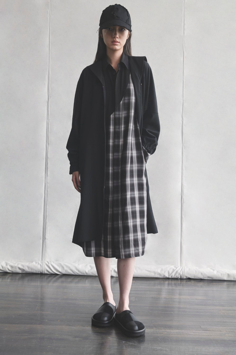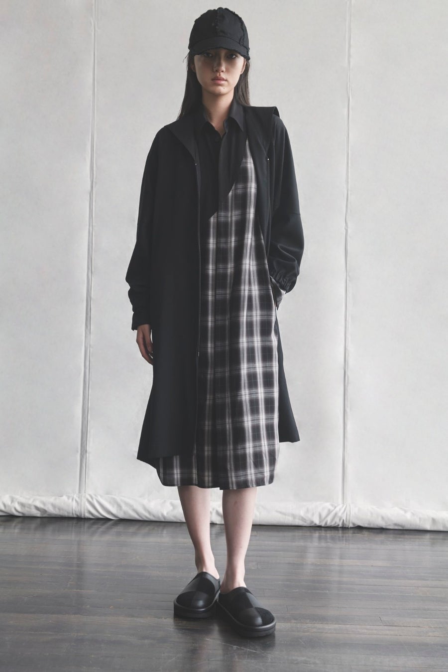 ワイズらしく、遊び心を感じさせる造形やディテールを軸に、ストライプ柄を取り入れたコレクション。ストリートウェアの要素を取り入れたグラフィックTシャツ、異素材を組み合わせたレイヤリング、そして切り込みを加えたネックデザインがアクセントとなる。アイコニックなフォルムを基調に、不変のコードと新鮮な要素を重ね合わせることで、今シーズンならではの表情を生み出している。