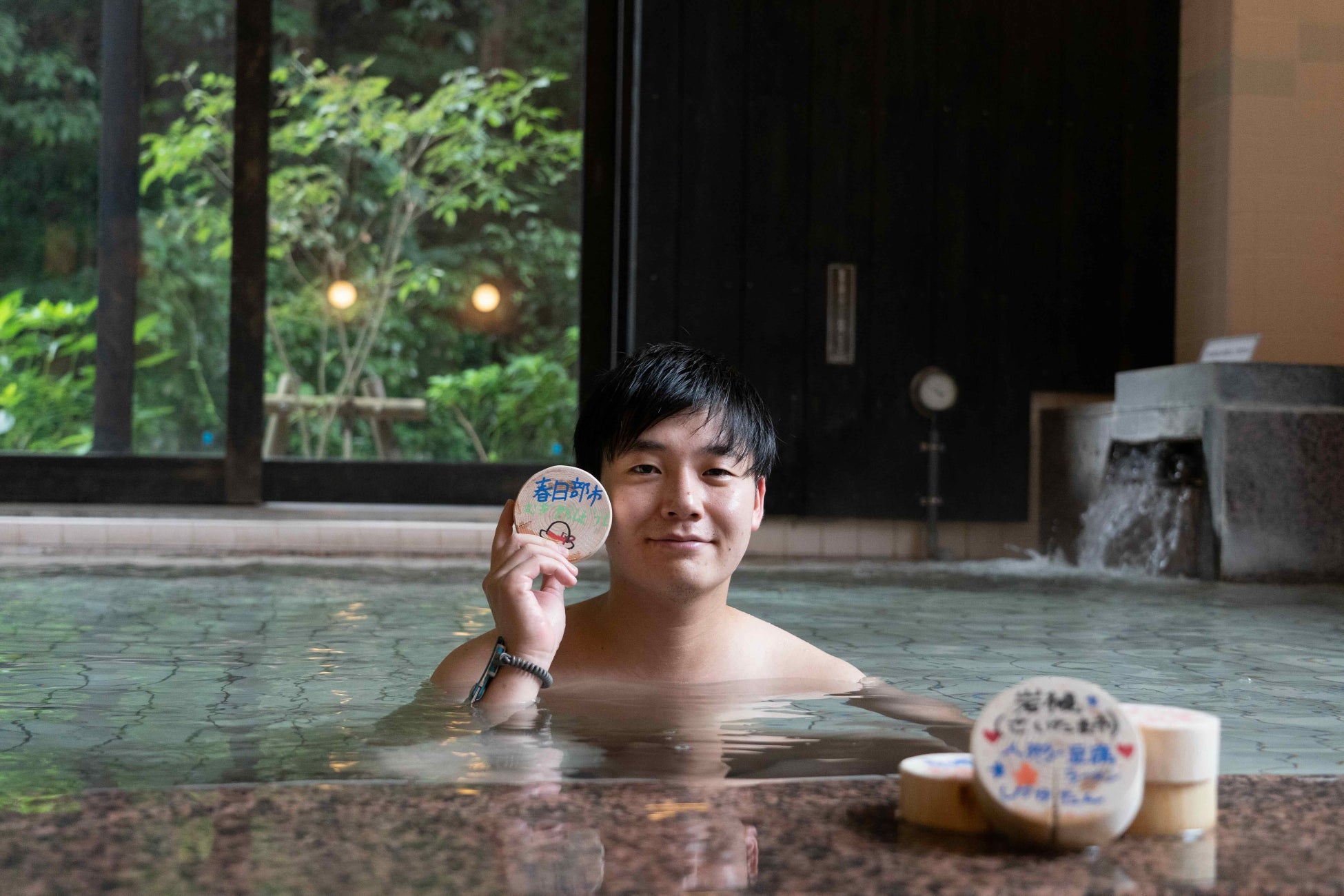 ヒノキの入浴木には、地元ときがわ町の間伐材ヒノキを使用しています。ときがわ町は約70%が山林で、杉やヒノキを中心とした林業が盛んです。木を間引く際に出る間伐材を使用することで、SDGsにも意識をむける機会になればと願うとともに、このイベントをきっかけに、埼玉県の魅力を多くの方に知ってもらい、埼玉県の良いところを再発見してもらえたら嬉しいと思います。