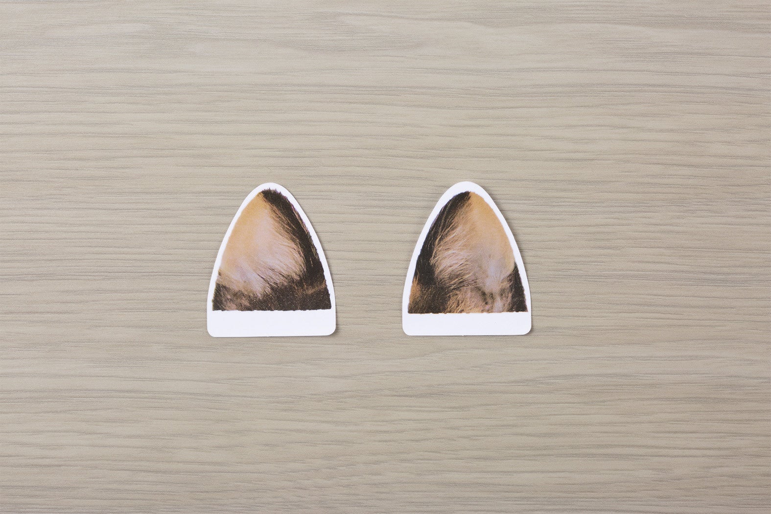 好評の耳型ふせんは、ノートと一緒に使うことでより犬猫感が増したノートにアレンジできます。片耳5枚×2組の10枚がセットになっています。