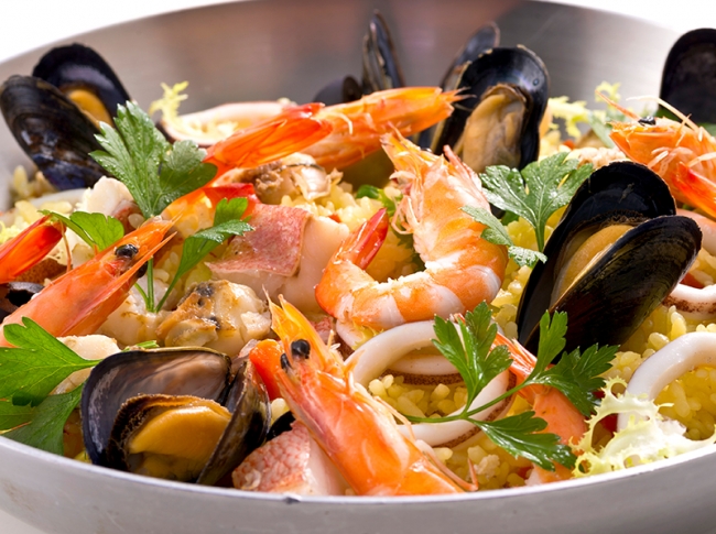 スペイン料理:パエリア、ハモンセラーノ、スパニッシュオムレツ、鯖のマリネとポテトサラダ、ガスパチョ 等