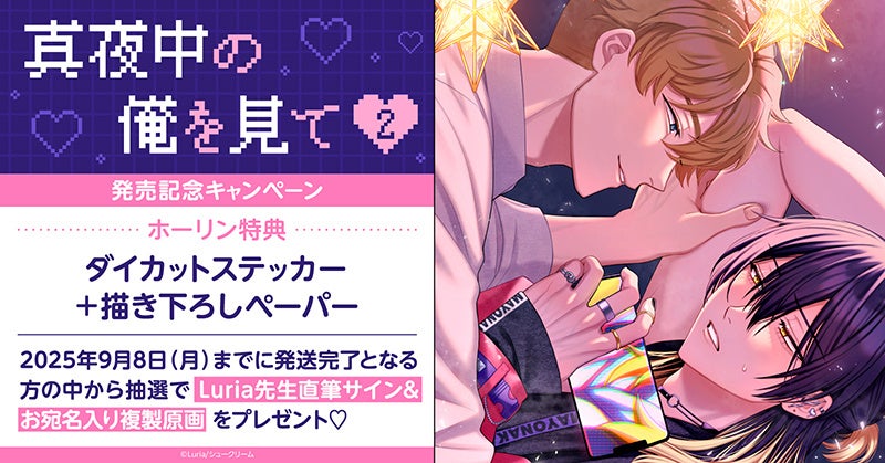ホーリンラブブックスではLuria先生最新コミックス『真夜中の俺を見て(2)』発売を記念して、豪華キャンペーンを実施いたします!