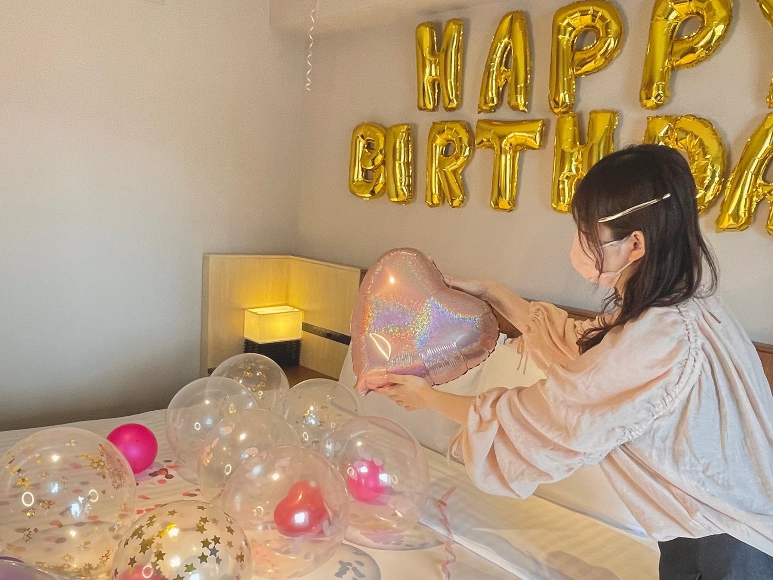 また、お部屋の飾りつけには、“バースデーバルーン”や“カラーバルーン”などをご用意しており、自分好みに飾りつけることができます。