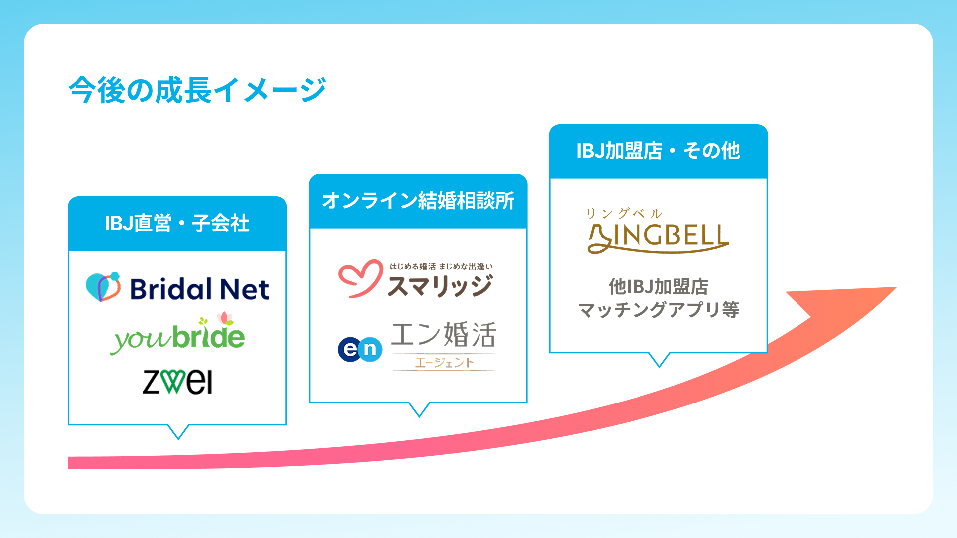 加盟店の順次拡大により、ユーザーがより多くの選択肢の中から自分に合った相談所・プランを選べる体制を強化するとともに、今後は会員基盤を持つ加盟店や異業種との連携も視野に入れ、オンライン結婚相談所市場のさらなる拡大を目指します。