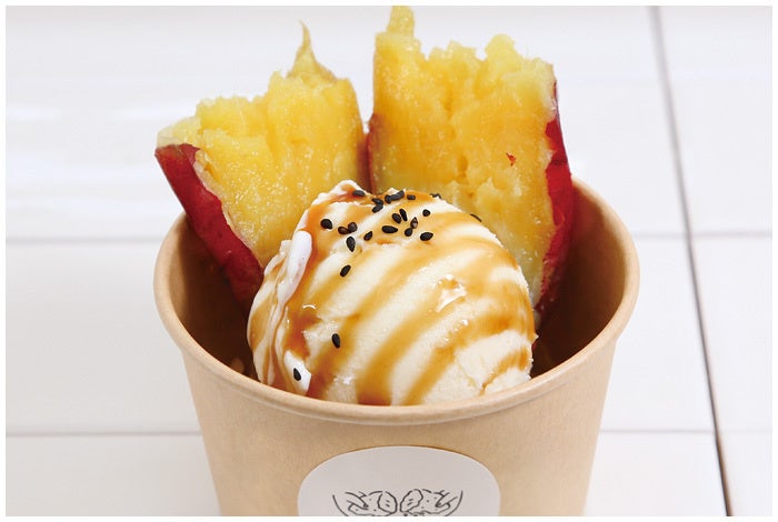 おいもスイーツ専門店『oimodo』と連携したスイーツが充実。冷やし焼き芋とミルクジェラートがカップになったoimodoカップも人気。