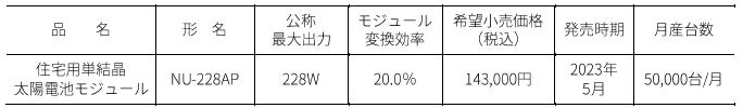※3 セル大型化により、モジュールの公称最大動作電流は当社2021年度モデル<NU-259AM>に対して、約21%大電流化。