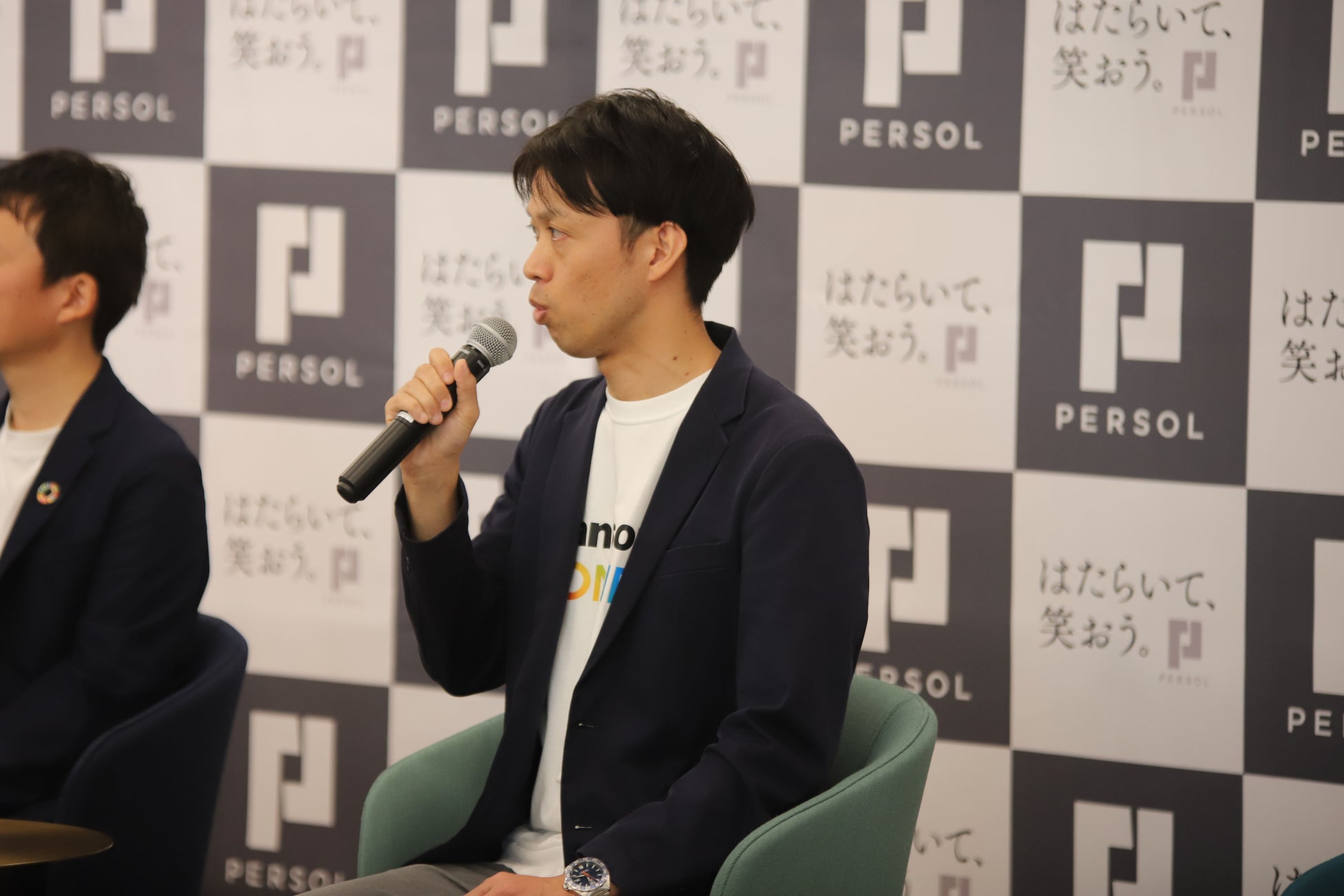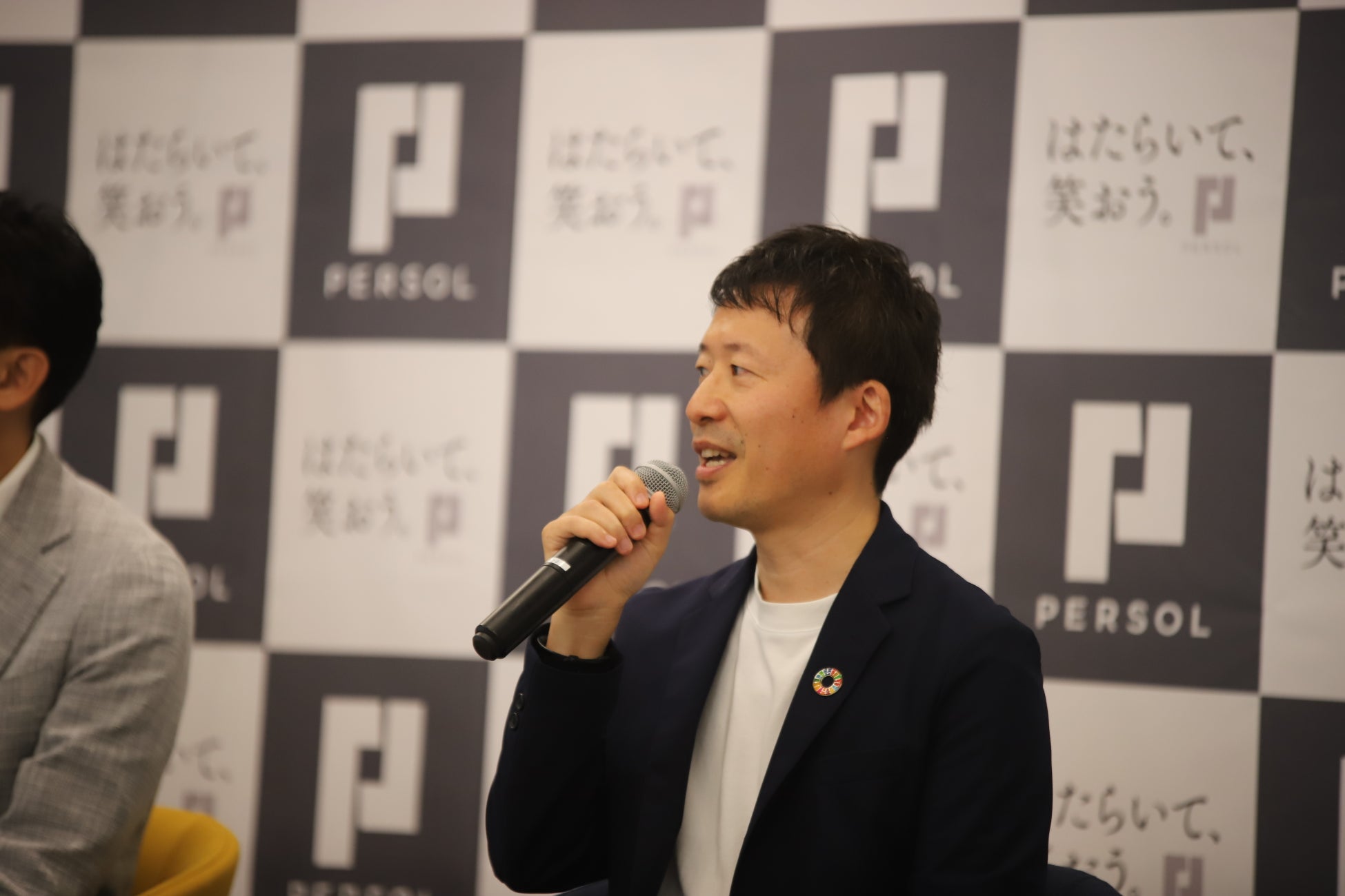 イベント開催に先立ち、パーソルホールディングス グループ人事本部 大場竜佳より、「当社グループは2026年3月までに1日以上の男性育休取得率100%を目指しており、本日のイベントを通して、取得率90%以上のSCSK様やパナソニックコネクト様の先進的な取り組みを学ばせていただき、更なる取得を推進していきたいと考えています。また当社では男性が積極的に育児に取り組みやすい環境づくりを応援する男性育休推進部や男性育休サポーターズといった有志コミュニティも活動しています。本日の第1部の企業対抗育児クイズ王は、その有志コミュニティ主体で企画をして推進しているので、ぜひ楽しんで参加してください。」と挨拶がありました。