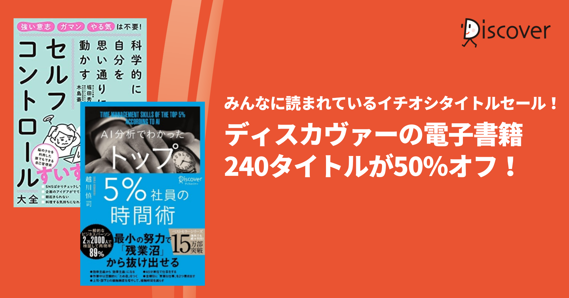 株式会社ディスカヴァー・トゥエンティワン(本社:東京都千代田区、取締役社長:谷口奈緒美)は、2022年10月17日から10月28日の12日間、楽天Koboにてディスカヴァーの電子書籍240タイトルが50%オフになる割引キャンペーンを開催します。