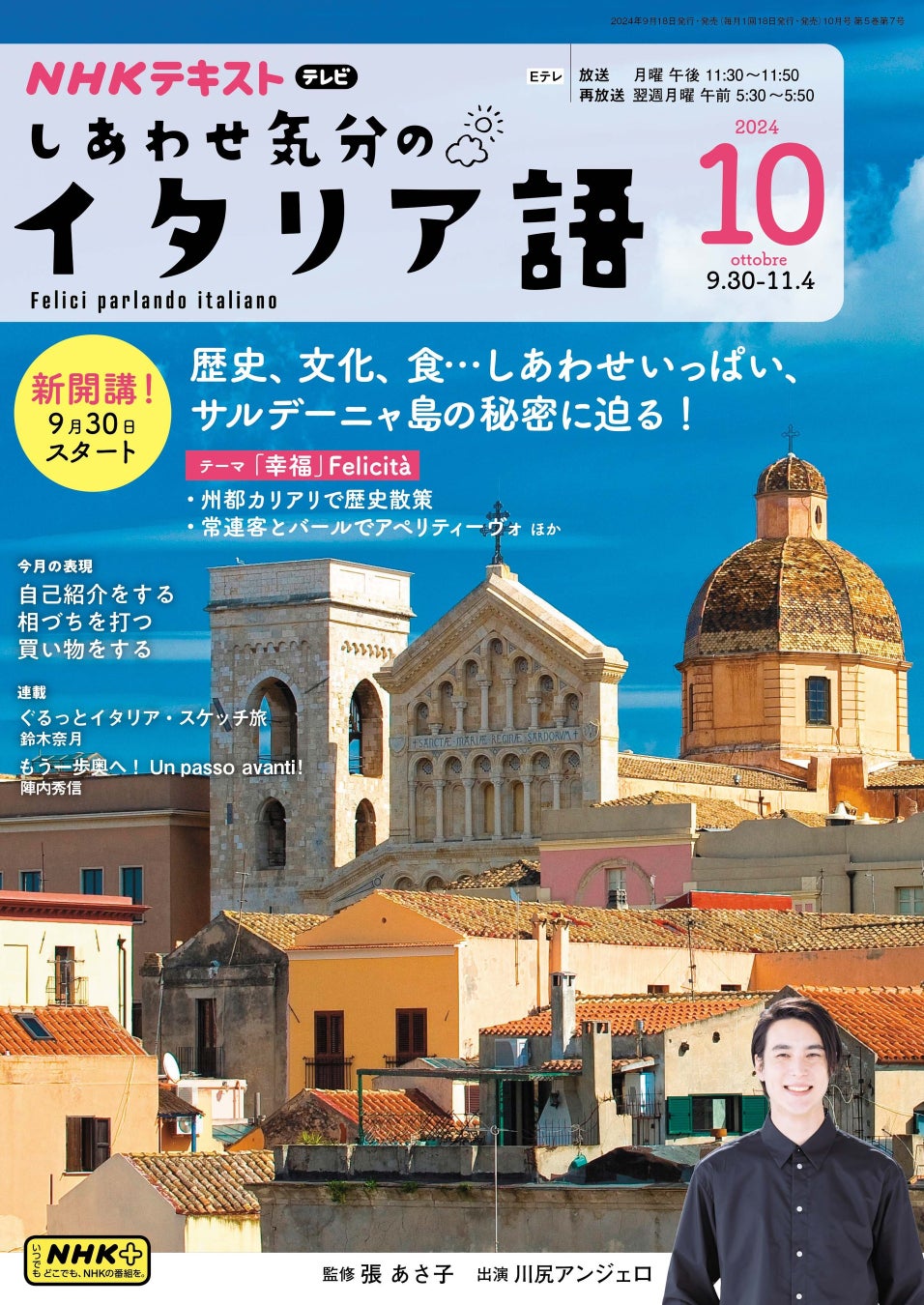 新シリーズの舞台は、地中海に浮かぶサルデーニャ島。孤高の島として独自の文化が花開き、島内陸部の険しい山岳地帯は地域の伝統文化を守ってきました。豊かな自然や郷土料理、手工芸、音楽など悠久の文化がいまも息づくサルデーニャ島に暮らす人々に出会い、しあわせ気分を味わいながら、楽しくイタリア語を学びましょう。ナビゲーターは、川尻アンジェロさんです。