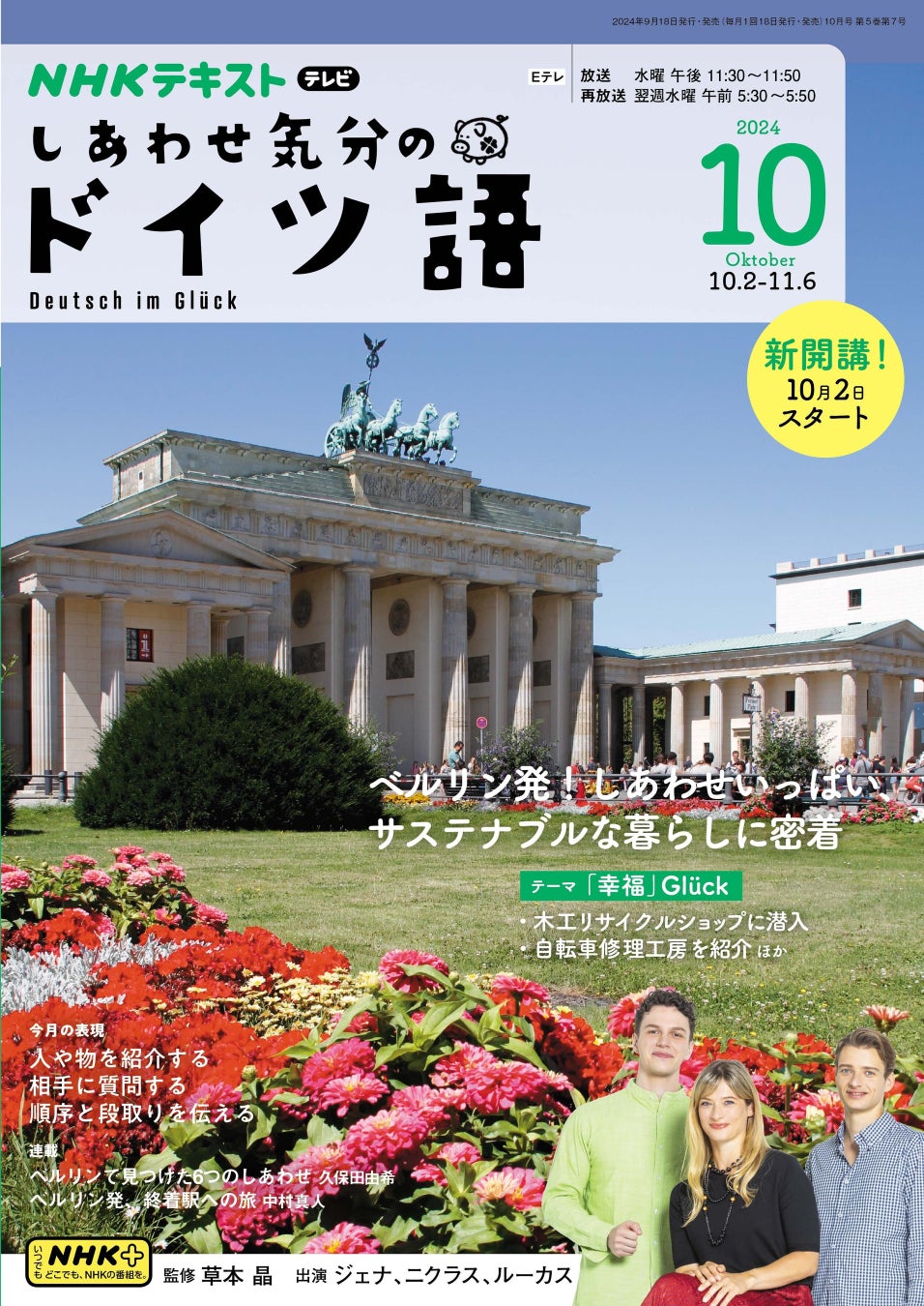 新シリーズの舞台地は首都ベルリン。ドイツらしい幸せな生活のための取り組み、アップサイクルや市民農園、ヴィーガン食など、ベルリンの最新の情報をリポートします。テキストではおなじみの草本晶先生が円滑なコミュニケーションのための便利なフレーズを中心に丁寧に解説していきます。ナビゲーターは、ジェナさん、ニクラスさん、ルーカスさんです。