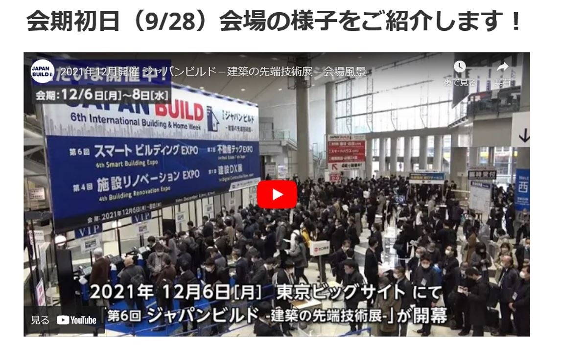 今年で6回目を迎える、[関西]ジャパンビルドが9月28日(水)についに開幕。初日の様子が速報動画として公開されました。