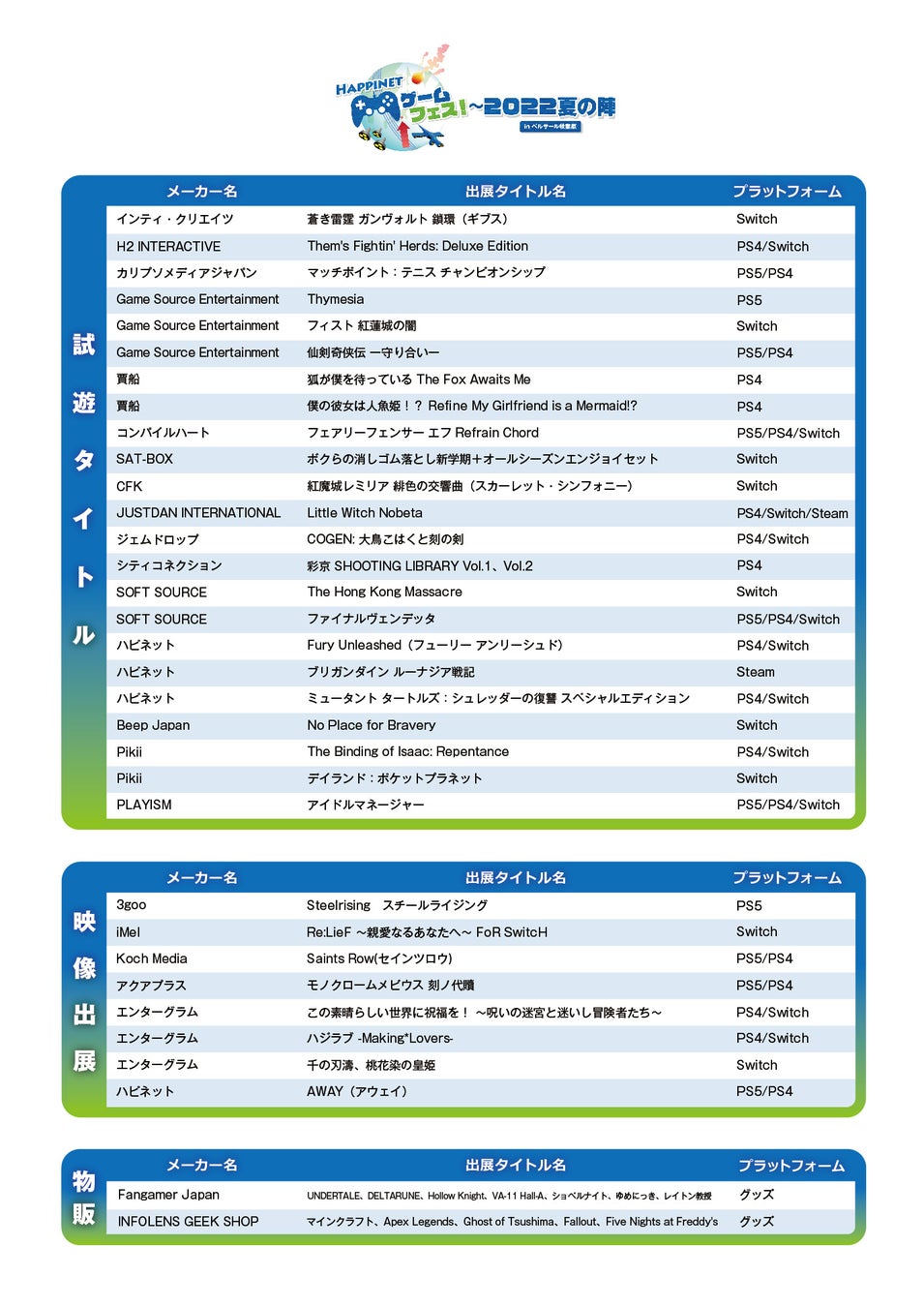 ・「Happinet ゲームフェス!~2022夏の陣~ inベルサール秋葉原」