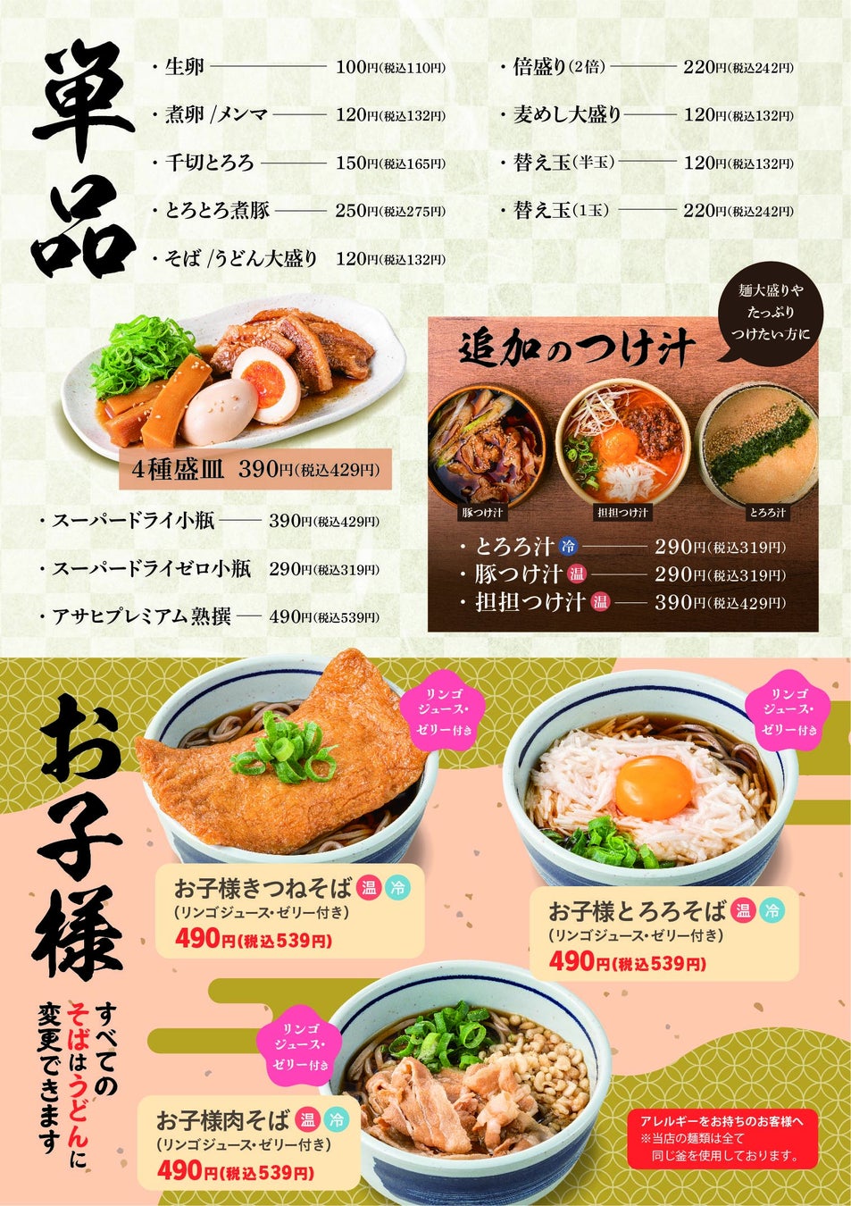 これらをたっぷりとトッピングした「東京とろろそば」の看板商品です。