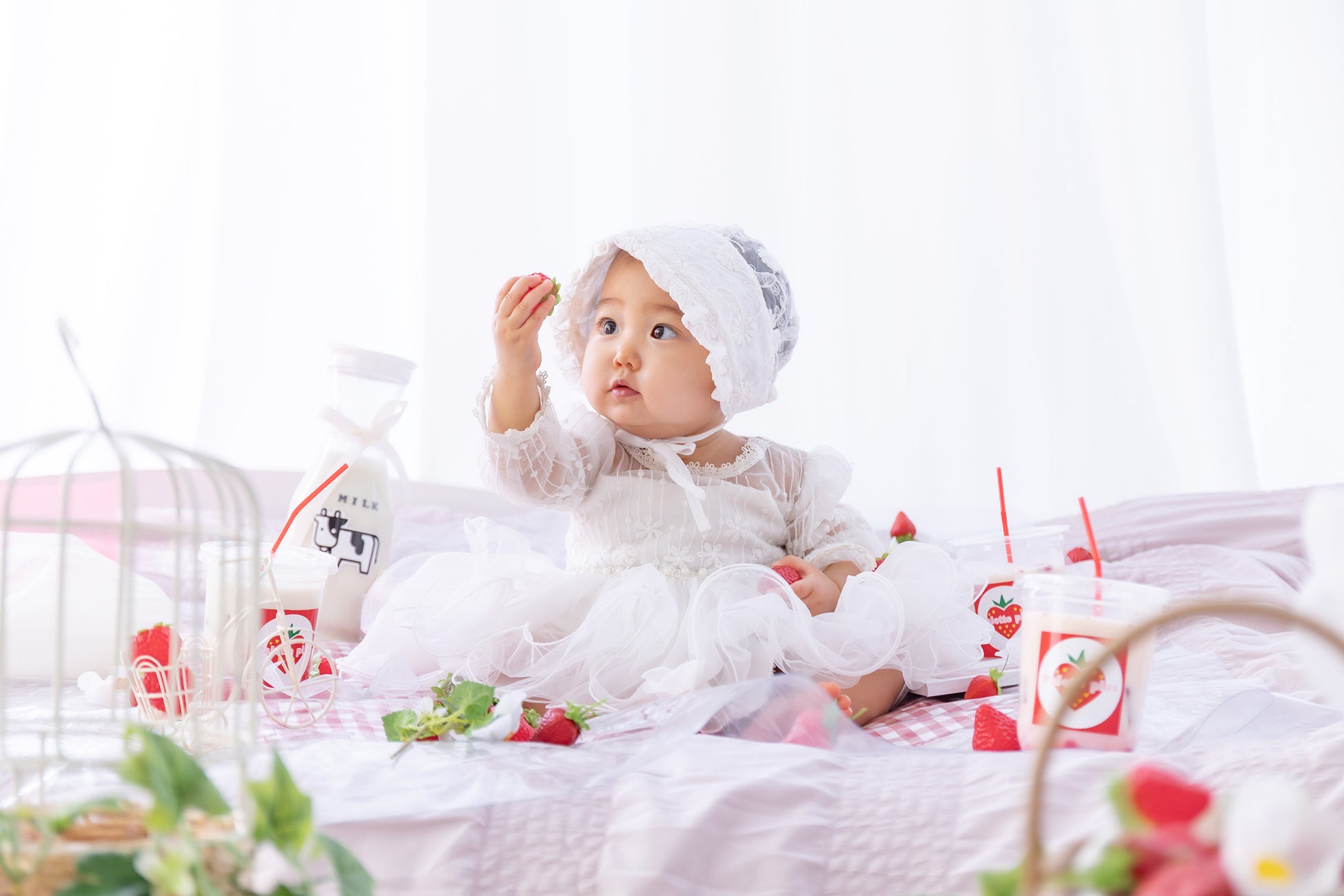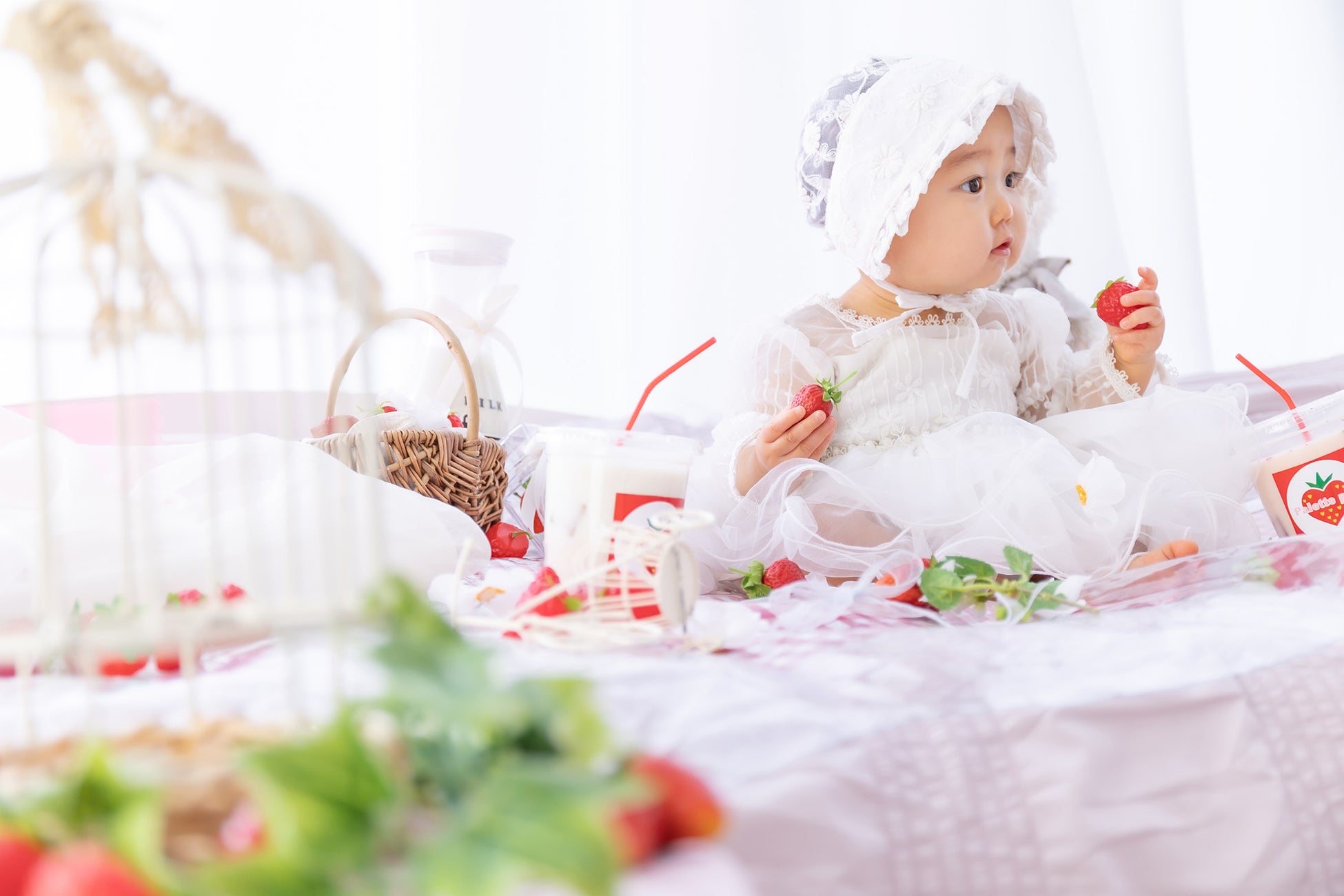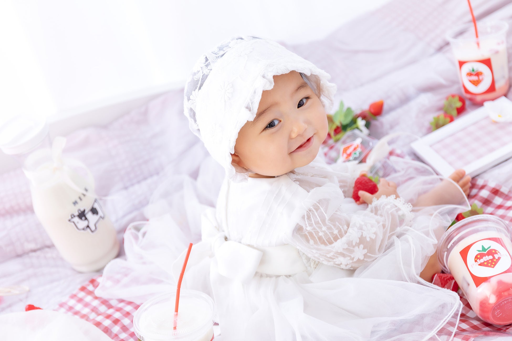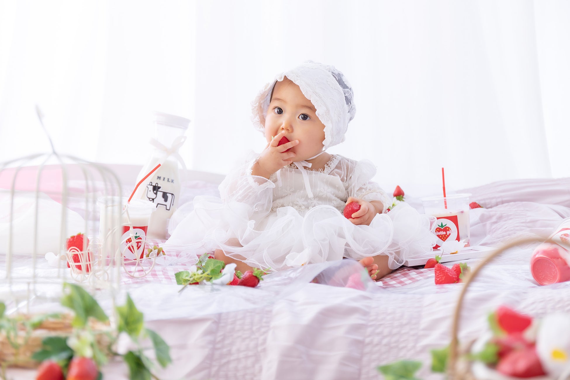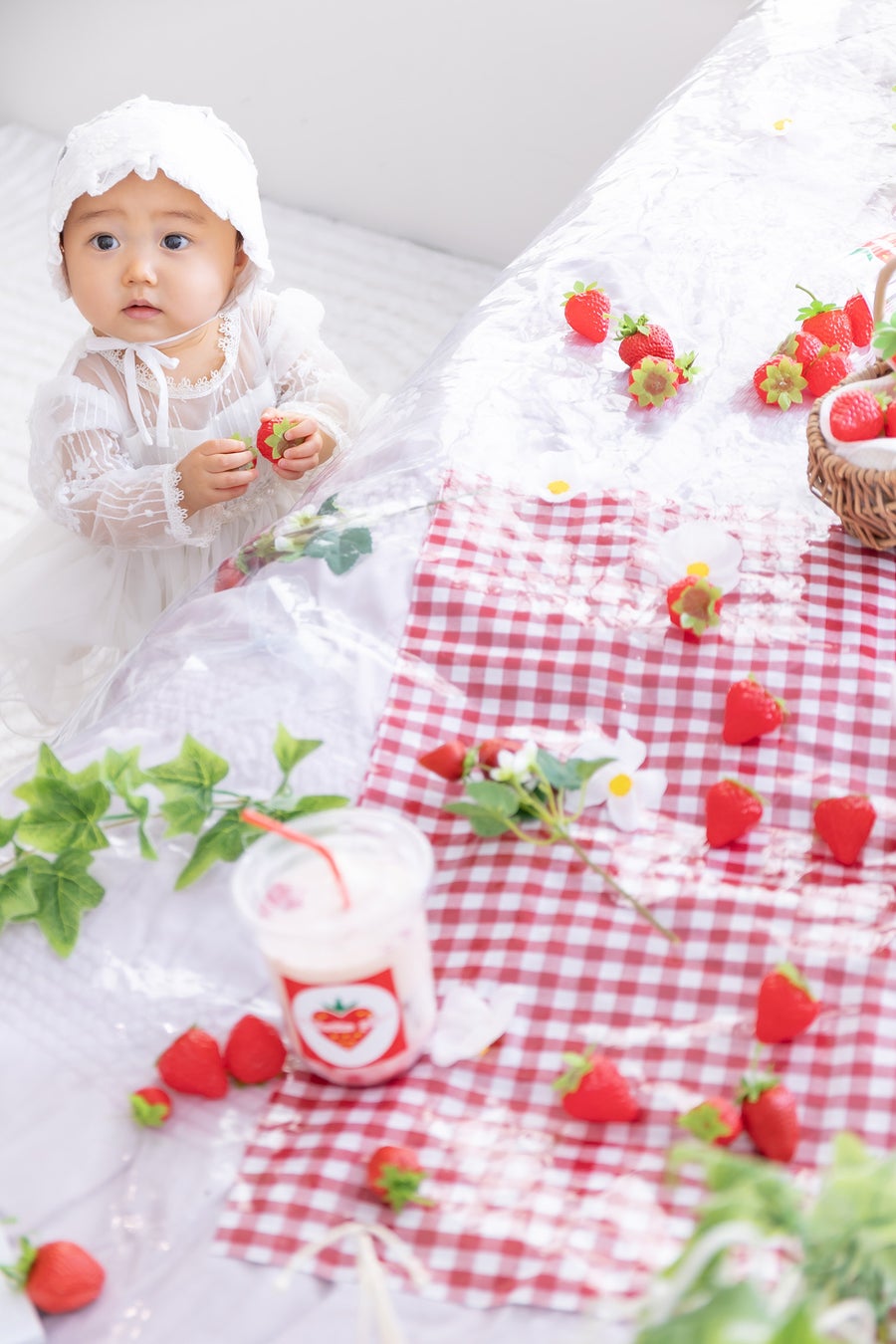 甘酸っぱい春の訪れ。大人気フルーツコレクションから【いちごオレ】が新登場 - ベビーフォトNEWシチュエーション
