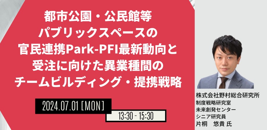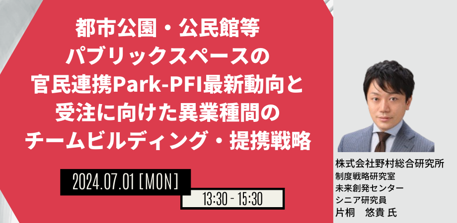 【JPIセミナー】「都市公園・公民館等パブリックスペースの官民連携Park-PFI最新動向と受注に向けた異業種間のチームビルディング・提携戦略」7月1日(月)開催