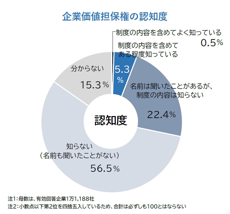 企業価値担保権の認知度は3割弱に、「知らない」企業は半数以上に