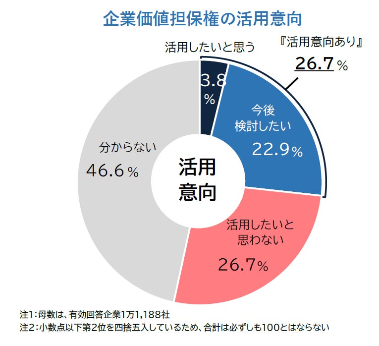 企業価値担保権に対し『活用意向あり』とする企業は26.7%