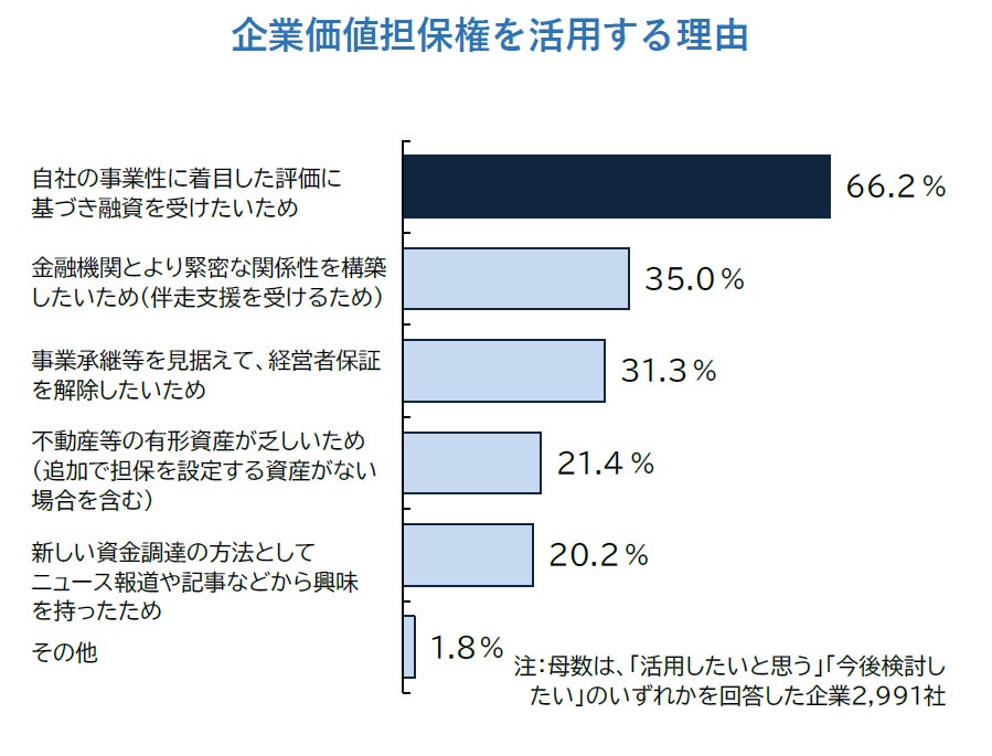 活用する理由、「自社の事業性に着目した評価に基づき融資を受けたいため」とする企業が66.2%でトップ